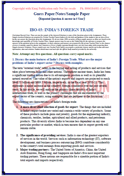 IGNOU IBO-03 SOLVED GUESS PAPER/NOTES/SAMPLE PAPER ENGLISH MEDIUM