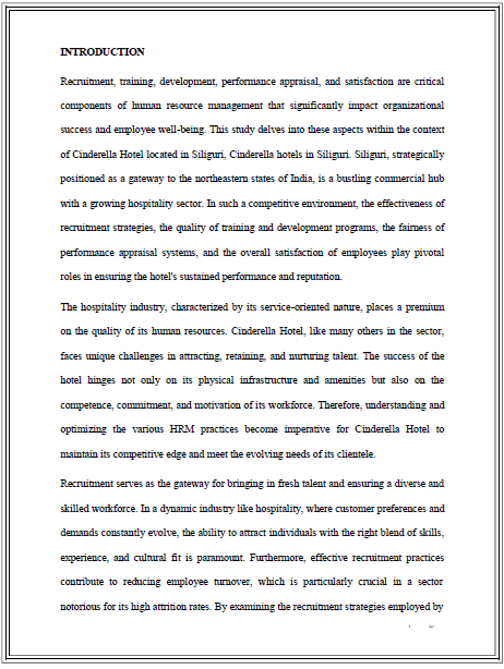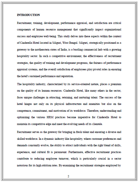 Title A STUDY OF RECRUITMENT, TRAINING, DEVELOPMENT, PERFORMANCE APPRAISAL AND SATISFACTION IN CINDERELLA HOTEL OF SILIGURI (WEST BENGAL)