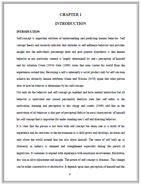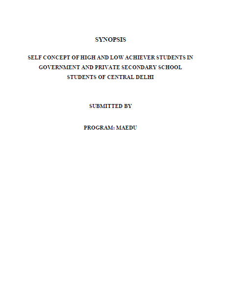 Title SELF CONCEPT OF HIGH AND LOW ACHIEVER STUDENTS IN GOVERNMENT AND PRIVATE SECONDARY SCHOOL STUDENTS OF CENTRAL DELHI
