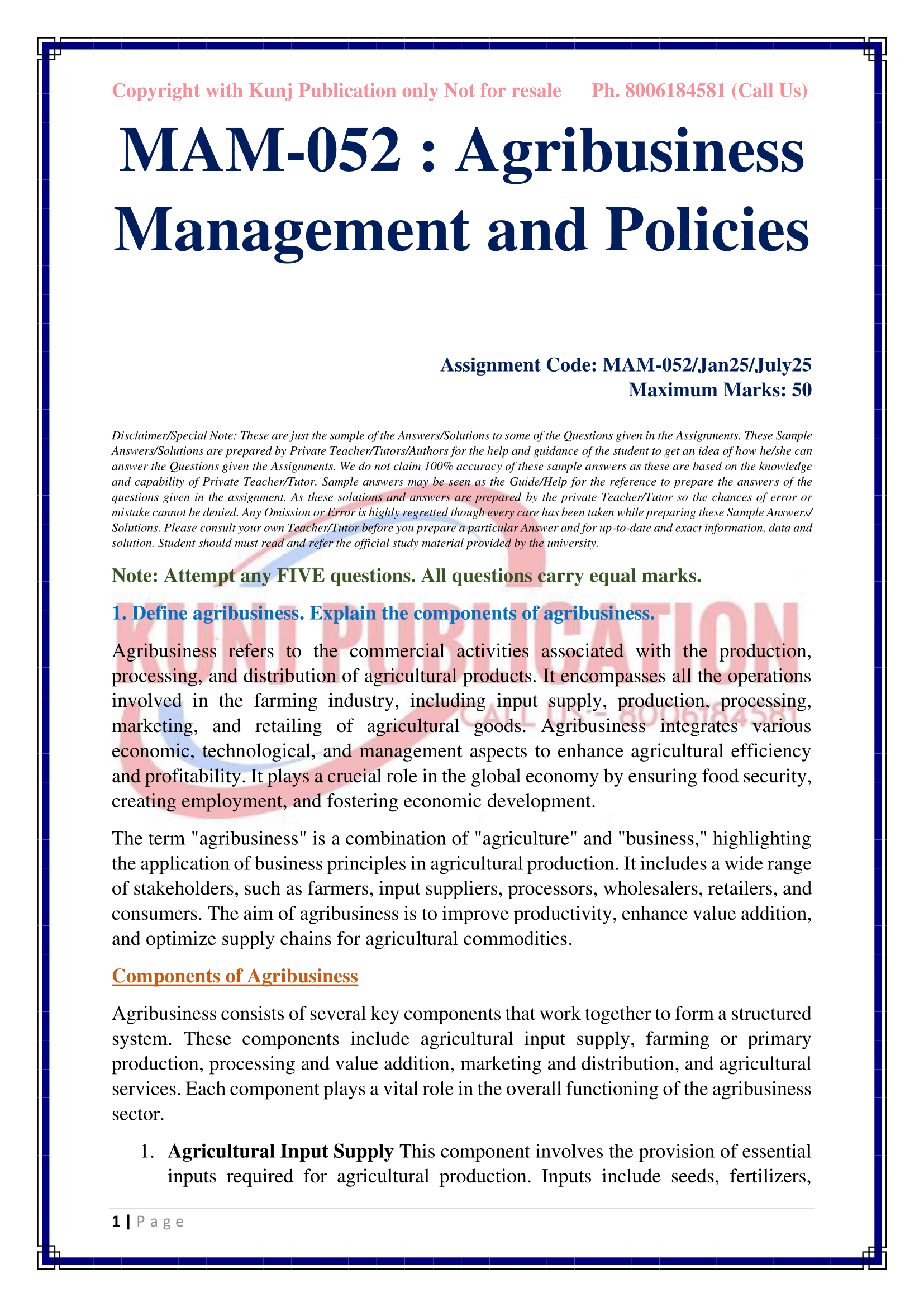IGNOU MAM-052 SOLVED ASSIGNMENT JAN 2025-JULY 2025 ENGLISH MEDIUM