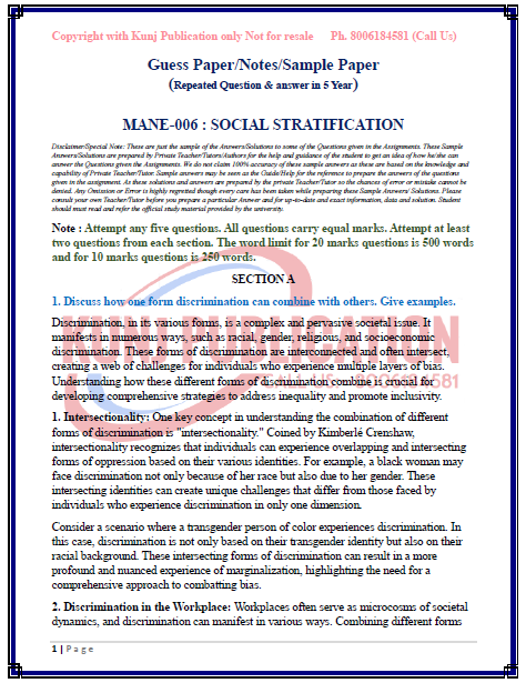 IGNOU MANE-006 GUESS PAPER/NOTES/SAMPLE PAPER ENGLISH MEDIUM