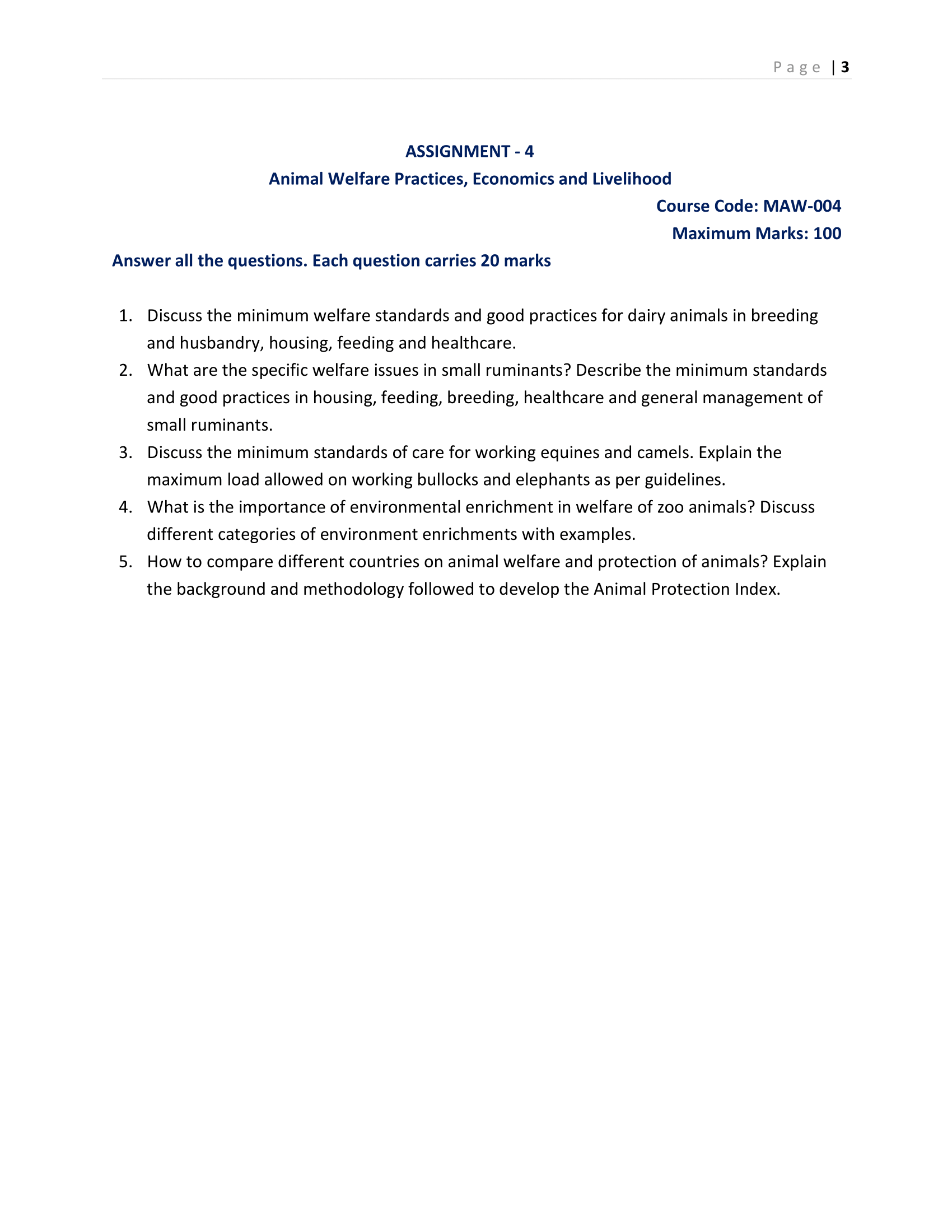 | Course | Post Graduate Diploma in Animal Welfare (PGDAW) |