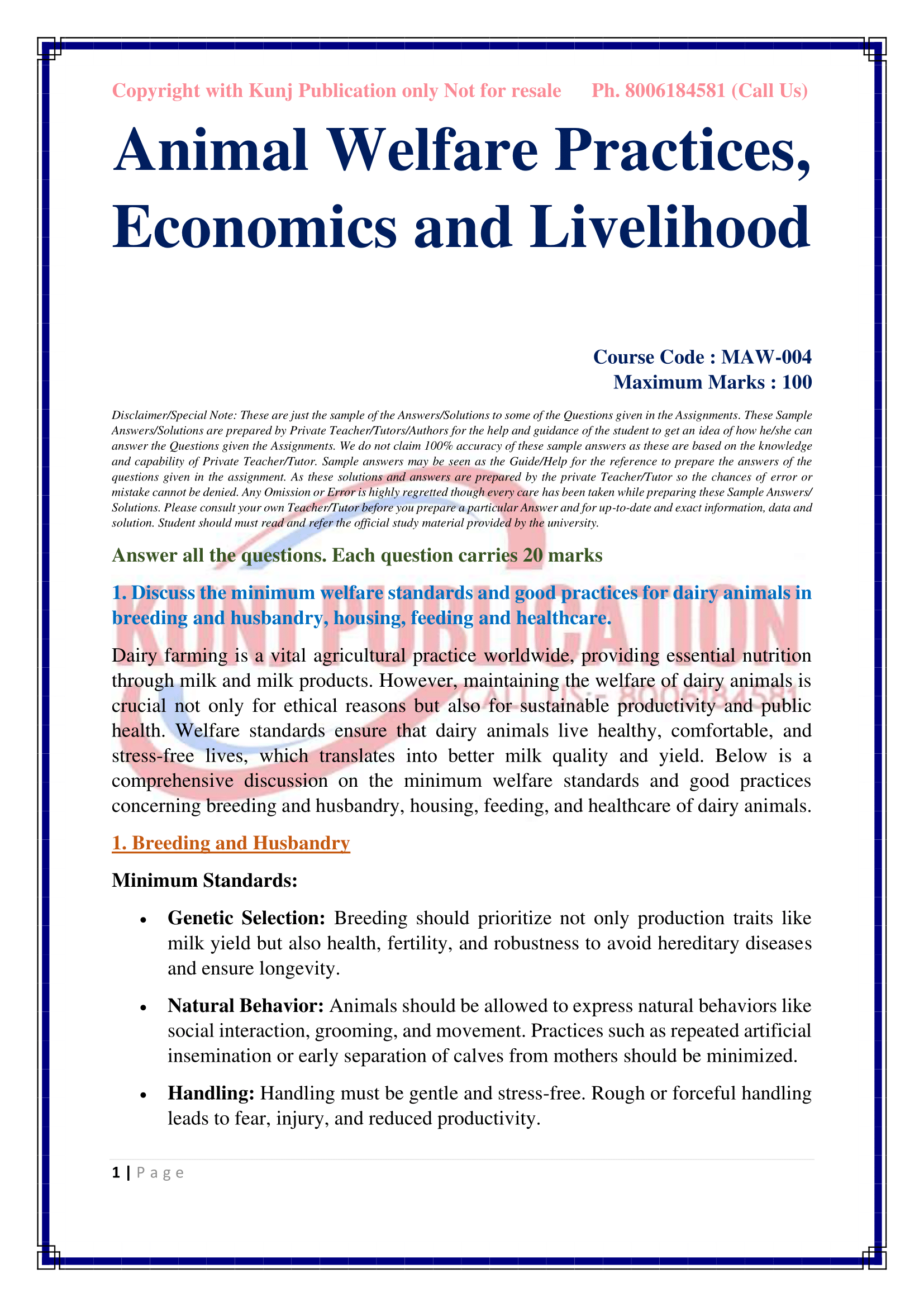 | Title | Animal Welfare Practices, Economics and Livelihood |