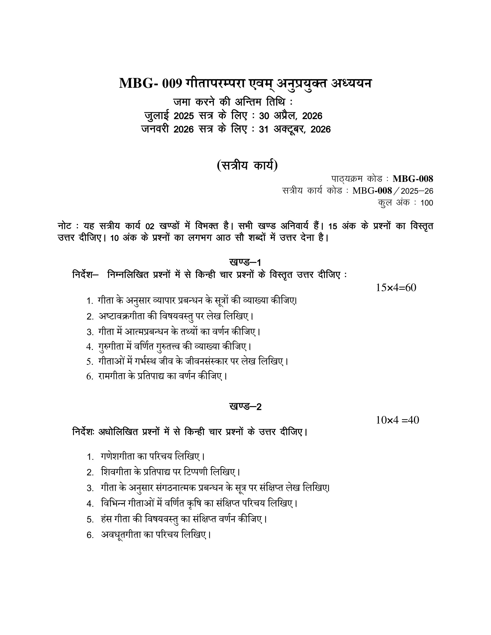 IGNOU MBG-009 SOLVED ASSIGNMENT 2025-26 HINDI MEDIUM