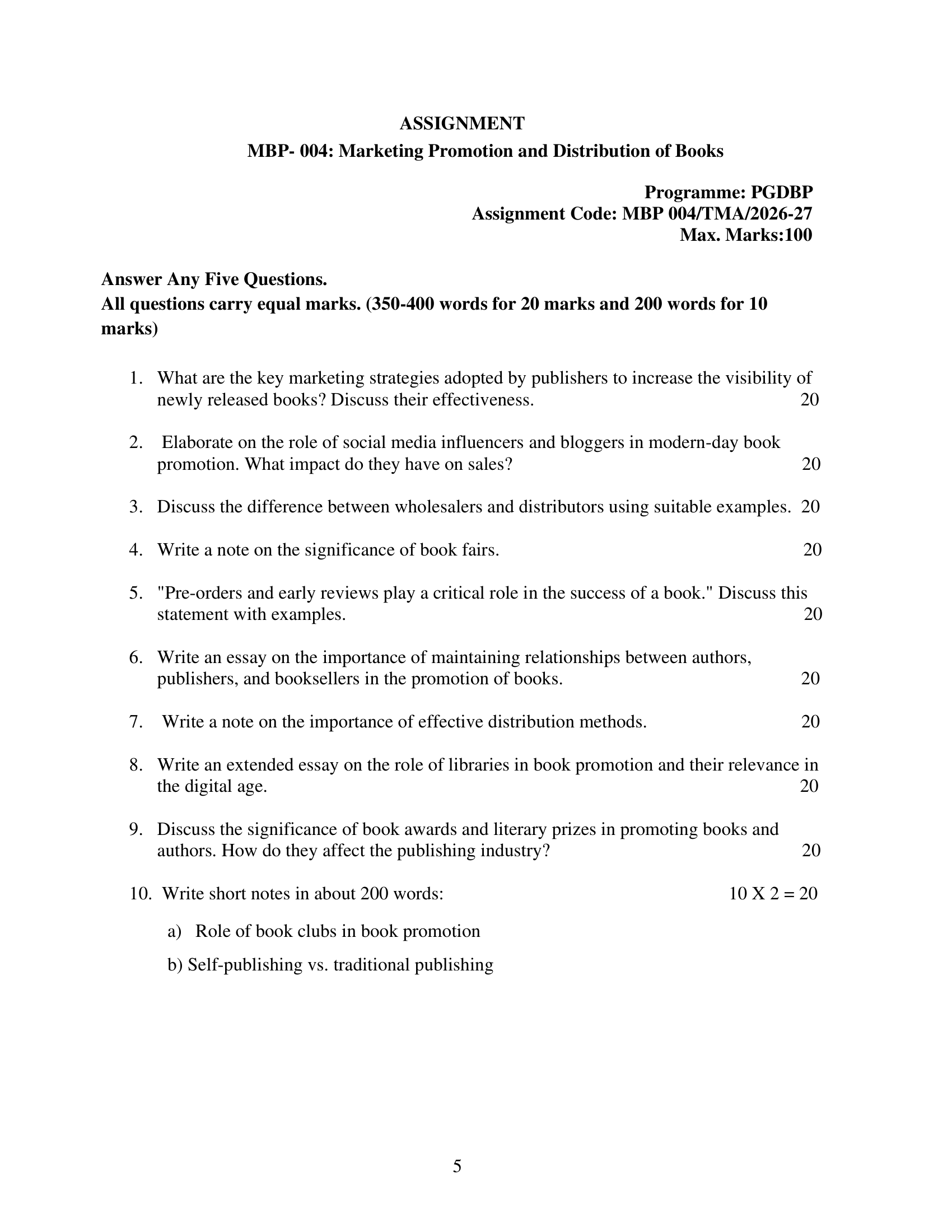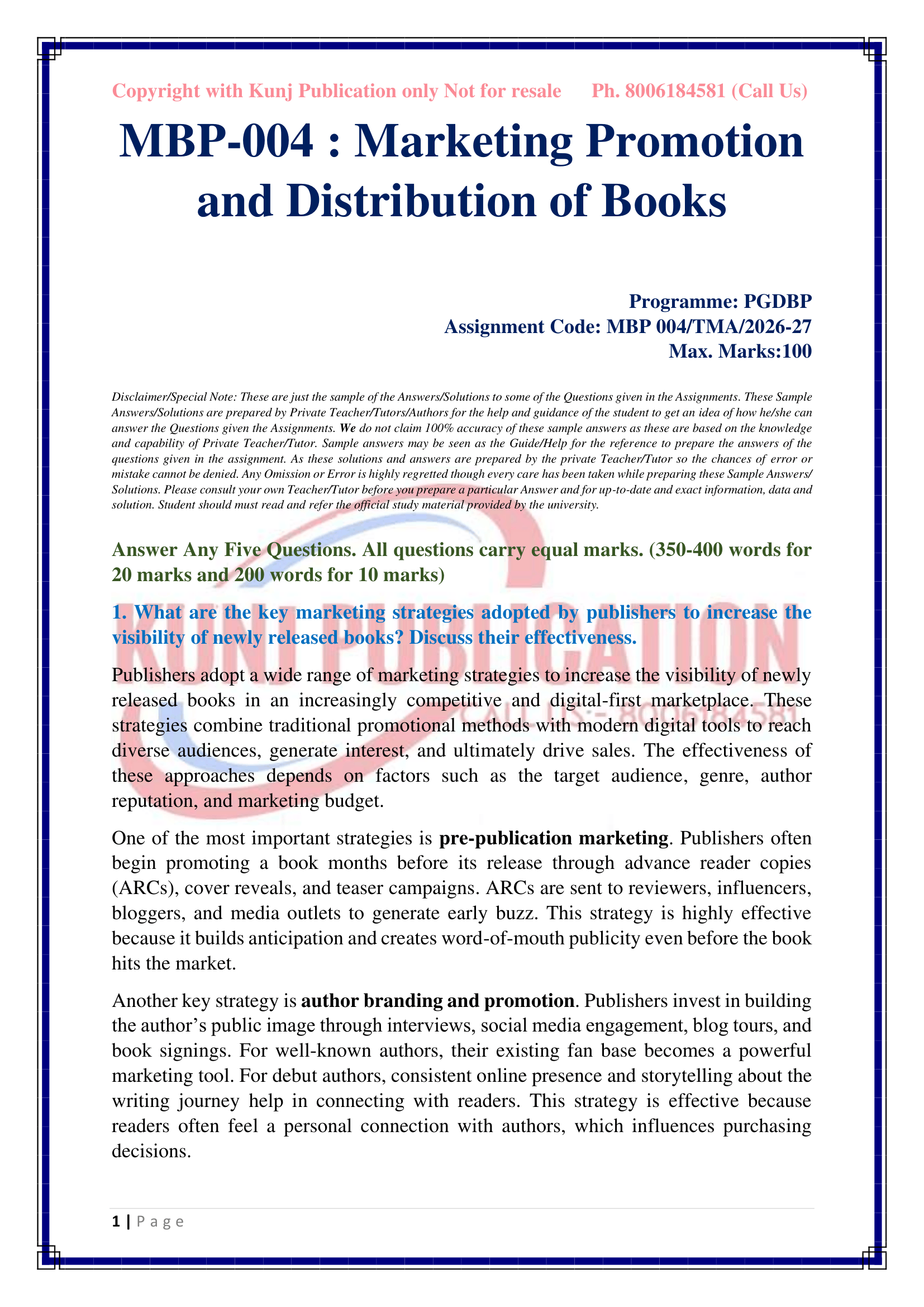 | Title | Marketing Promotion and Distribution of Books |