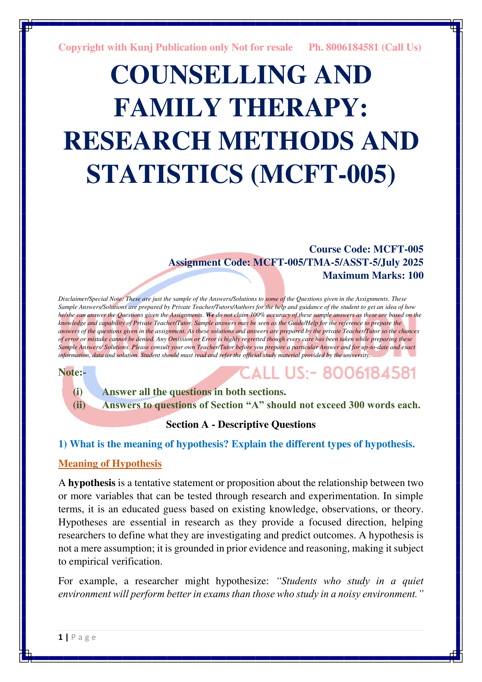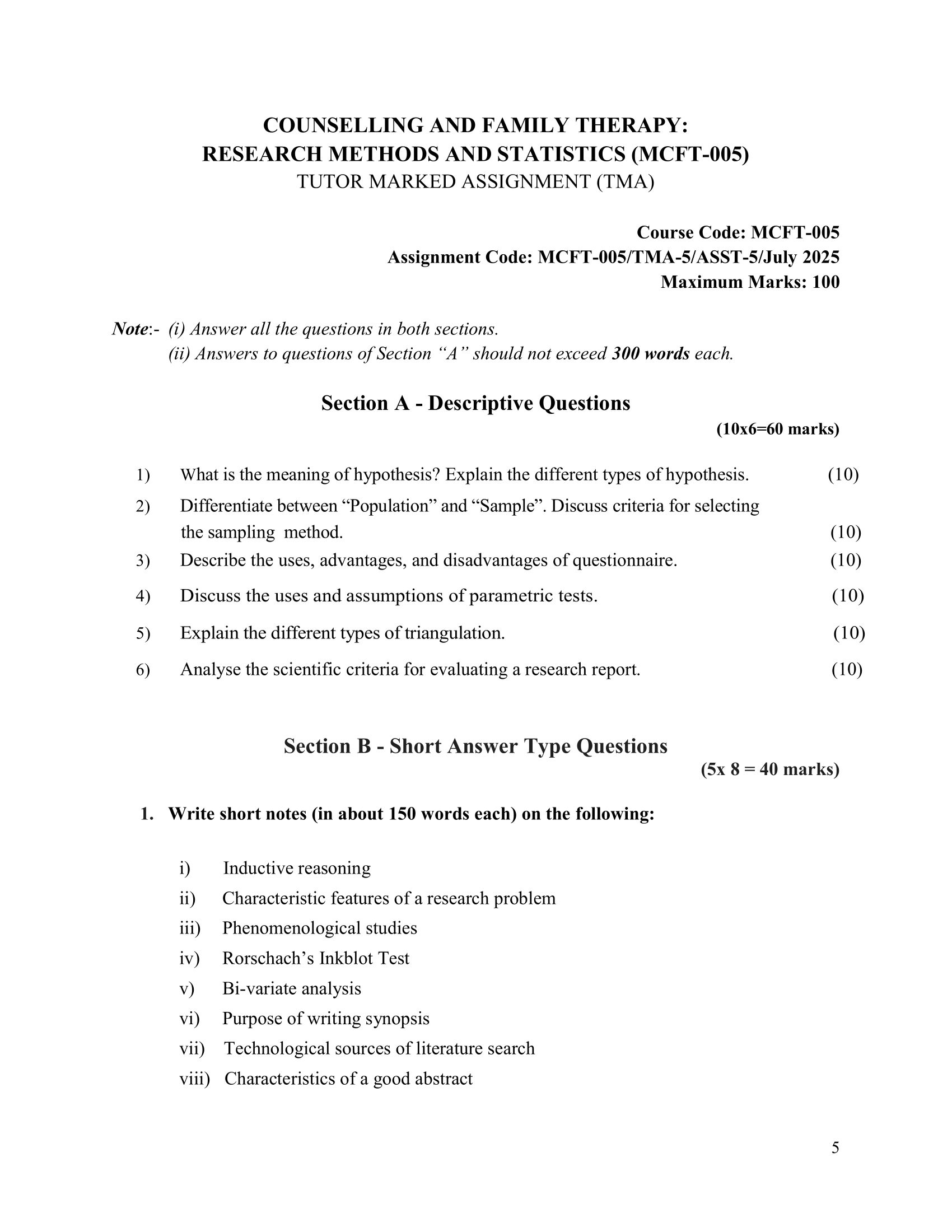 IGNOU MCFT-005 SOLVED ASSIGNMENT JULY 2025 ENGLISH MEDIUM