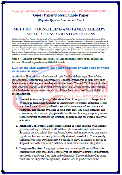 IGNOU MCFT-007 GUESS PAPER/NOTES/SAMPLE PAPER ENGLISH MEDIUM