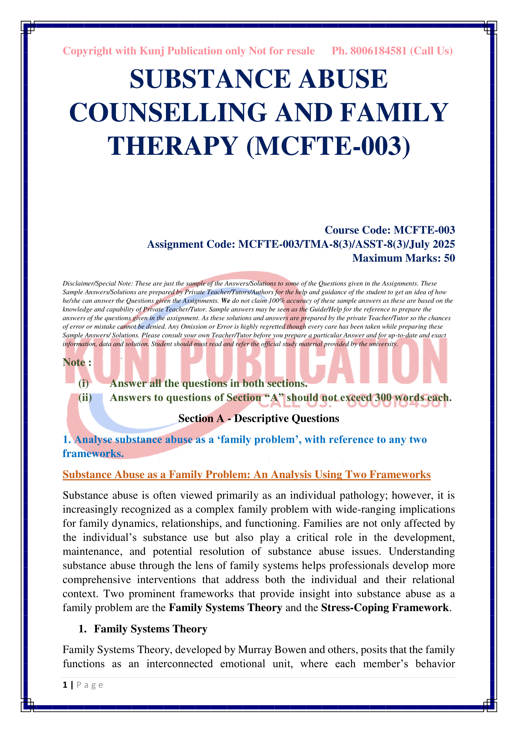 IGNOU MCFTE-003 SOLVED ASSIGNMENT JULY 2025 ENGLISH MEDIUM