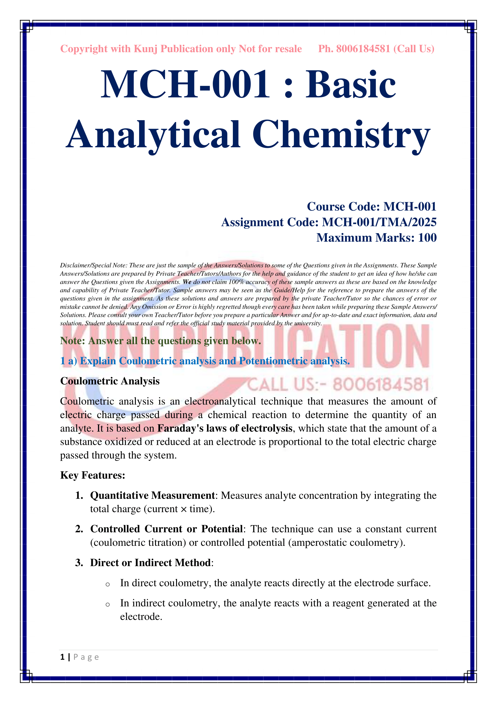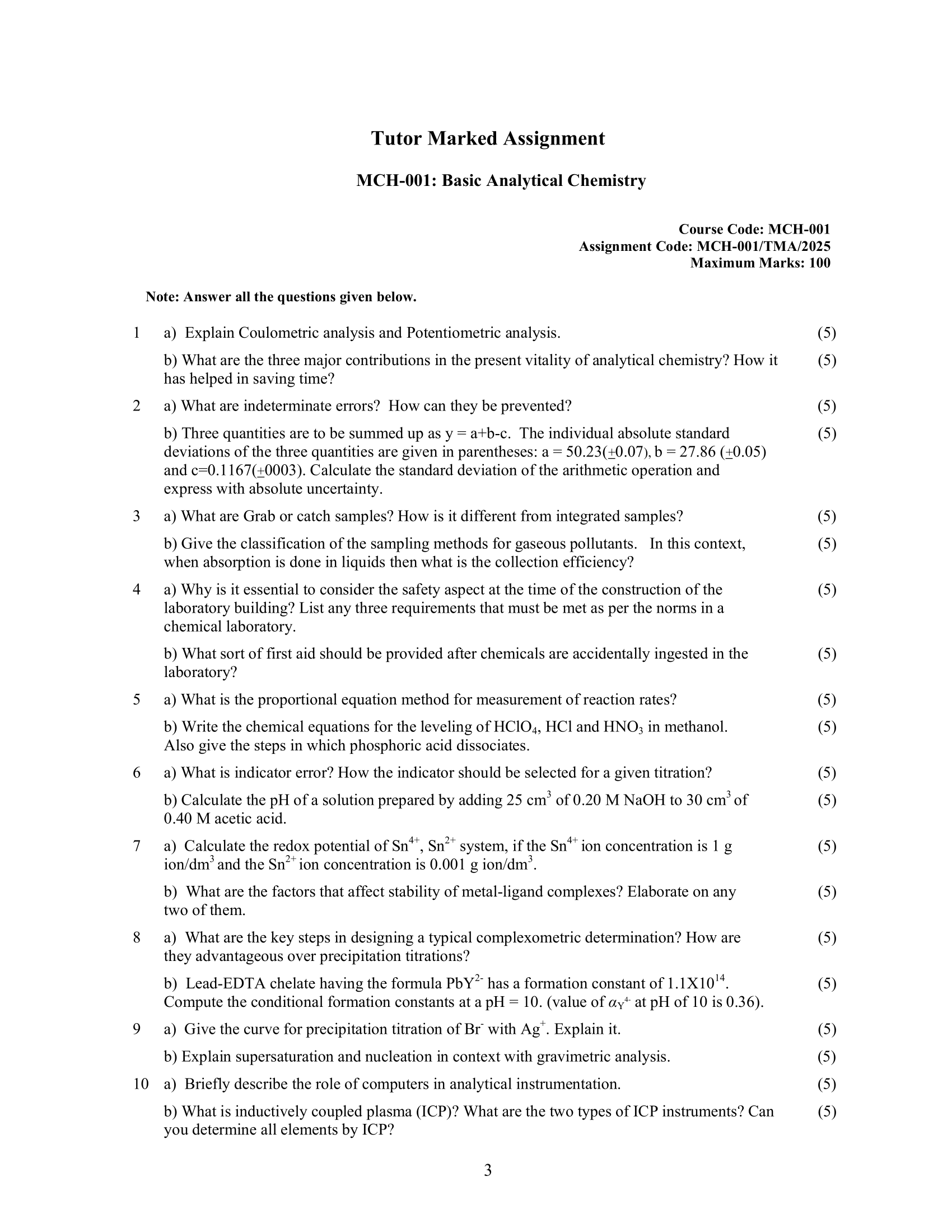 IGNOU MCH-001 SOLVED ASSIGNMENT 2025 ENGLISH MEDIUM
