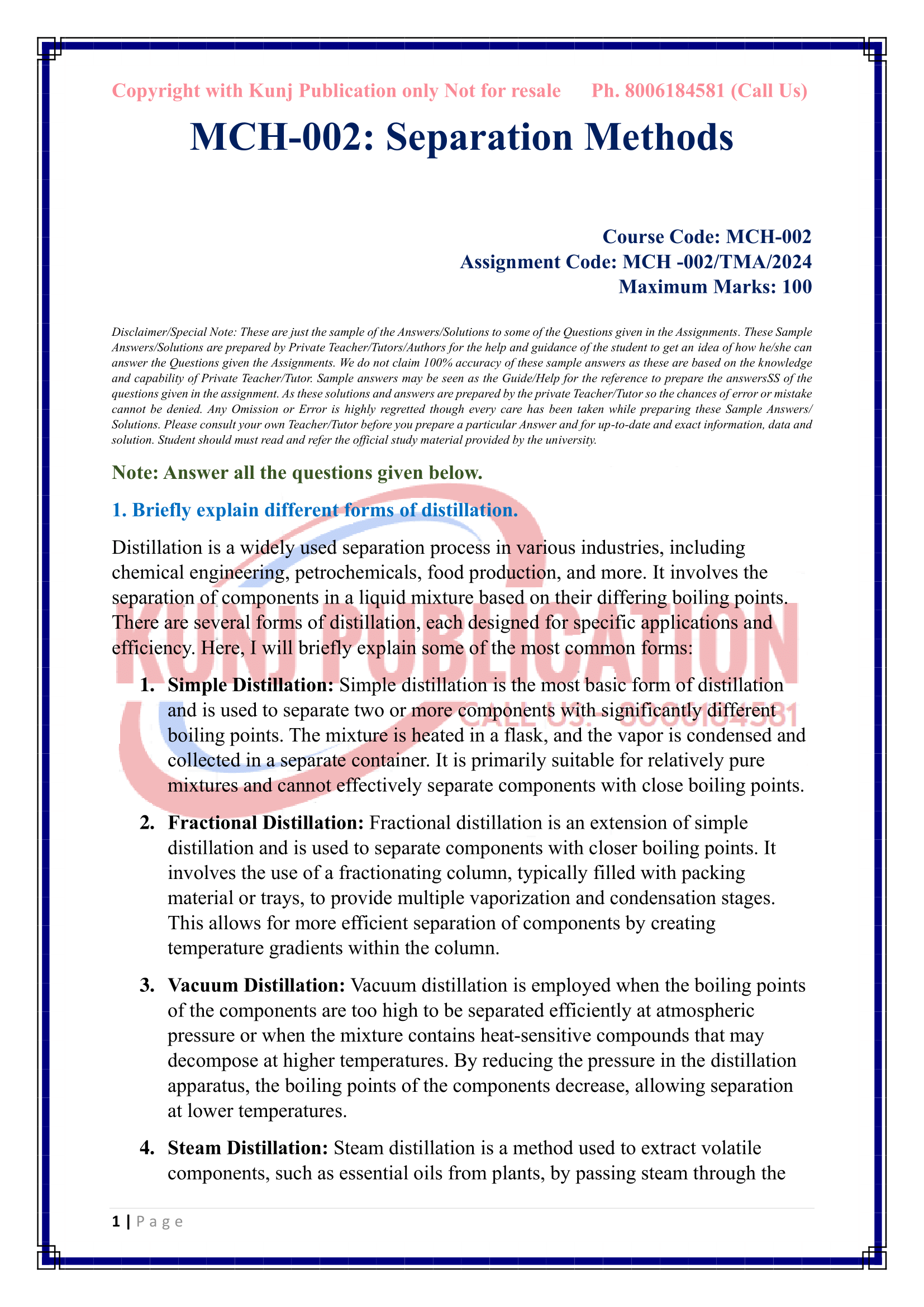 IGNOU MCH-002 SOLVED ASSIGNMENT 2024 ENGLISH MEDIUM