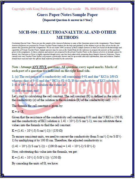 IGNOU MCH-004 SOLVED GUESS PAPER/NOTES/SAMPLE PAPER ENGLISH MEDIUM