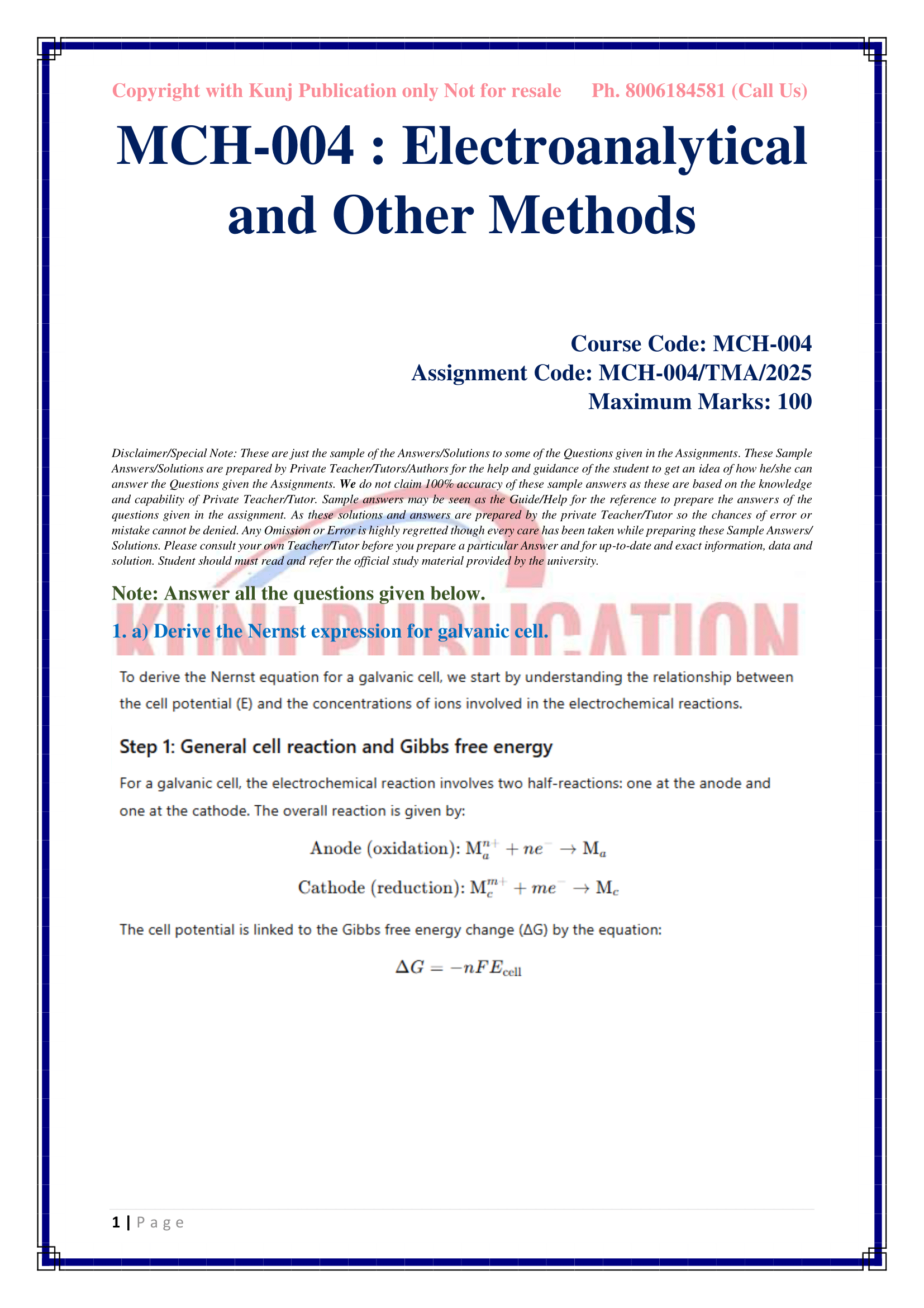 IGNOU MCH-004 SOLVED ASSIGNMENT 2025 ENGLISH MEDIUM
