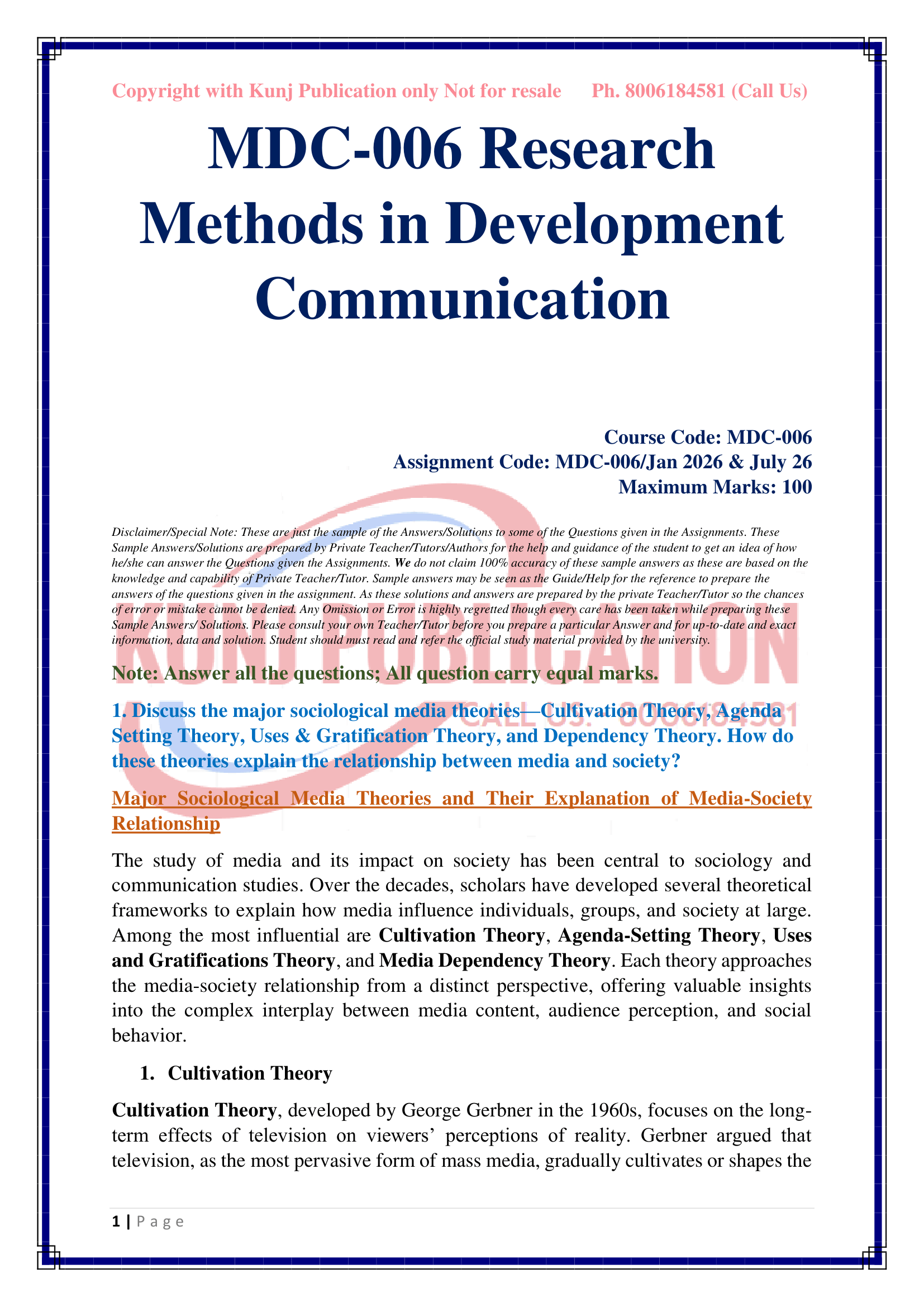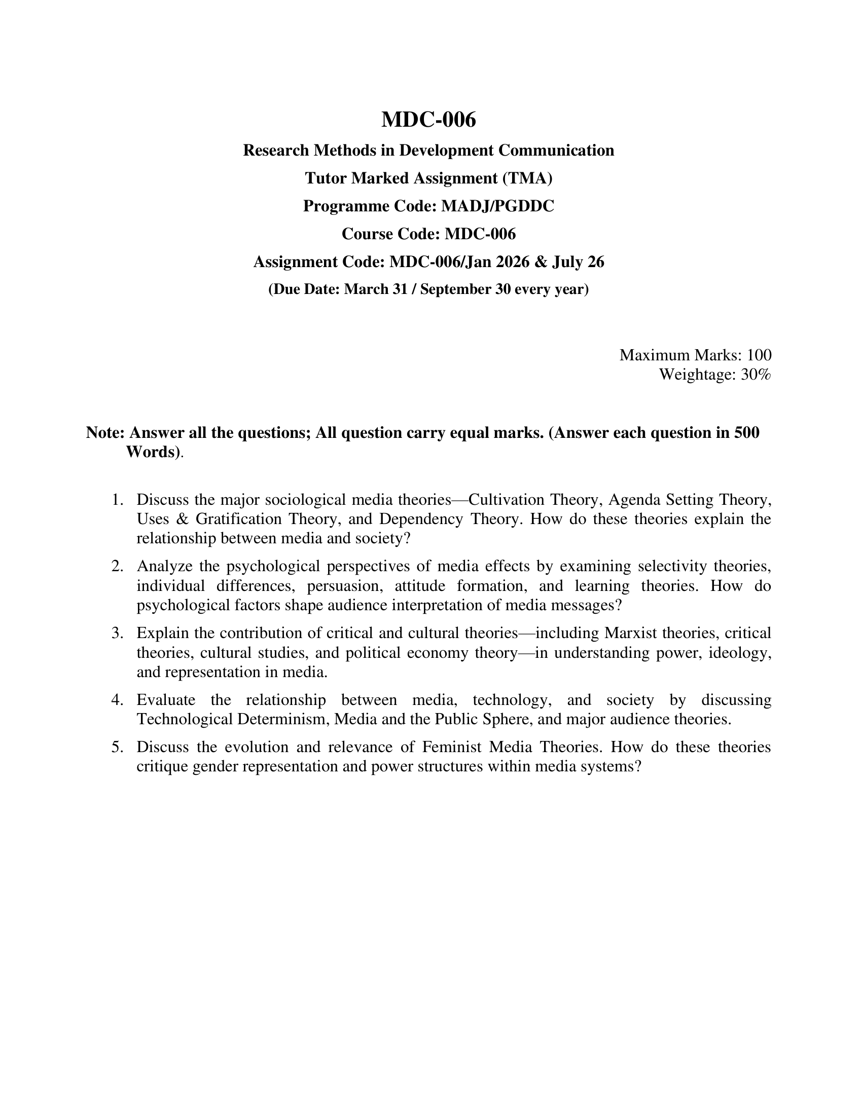 IGNOU MDC-006 SOLVED ASSIGNMENT JAN 2026-JULY 2026 ENGLISH MEDIUM