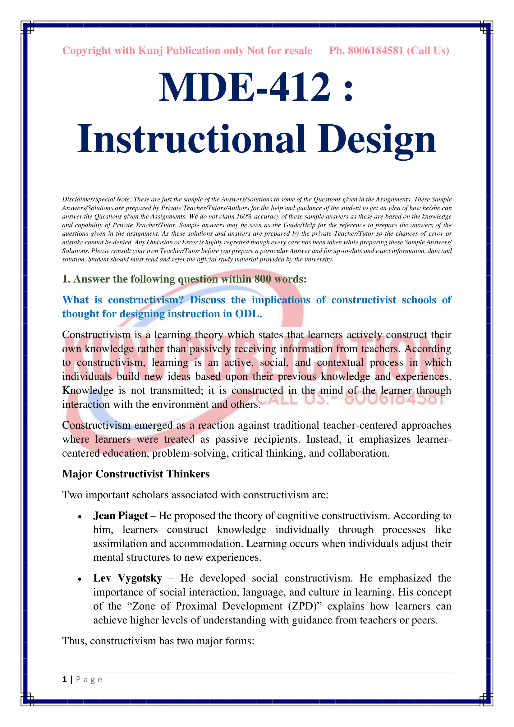 IGNOU MDE-412 SOLVED ASSIGNMENT JAN & JULY 2026 ENGLISH MEDIUM