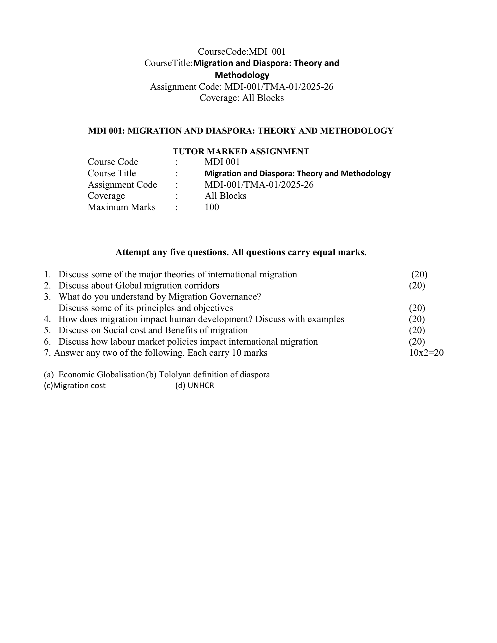| Course | M.A. in Migration and Diaspora (MAMIDI) |