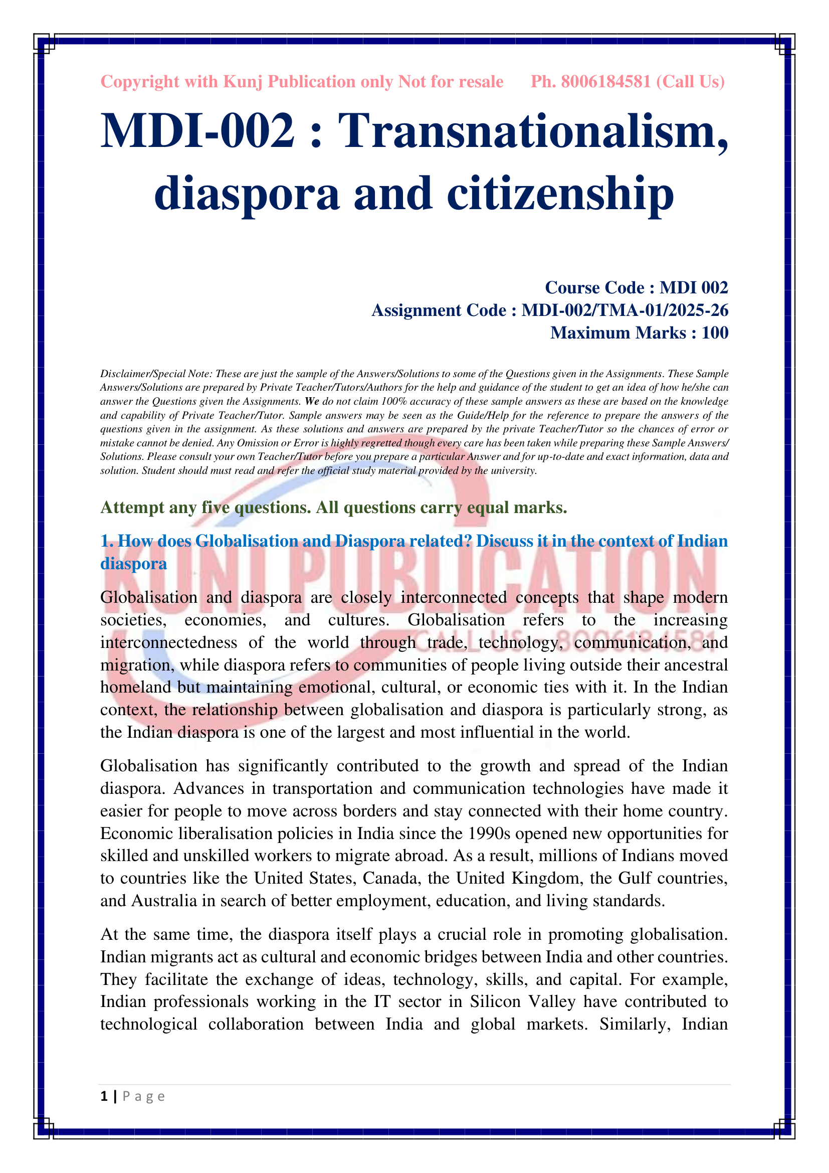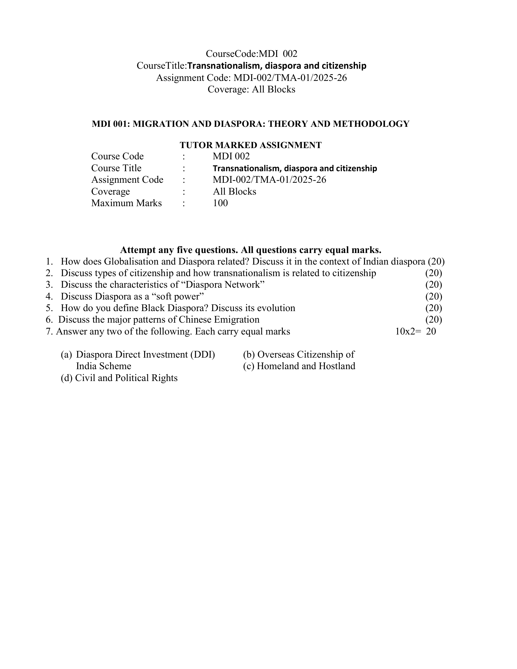 IGNOU MDI-002 SOLVED ASSIGNMENT 2025-26 ENGLISH MEDIUM