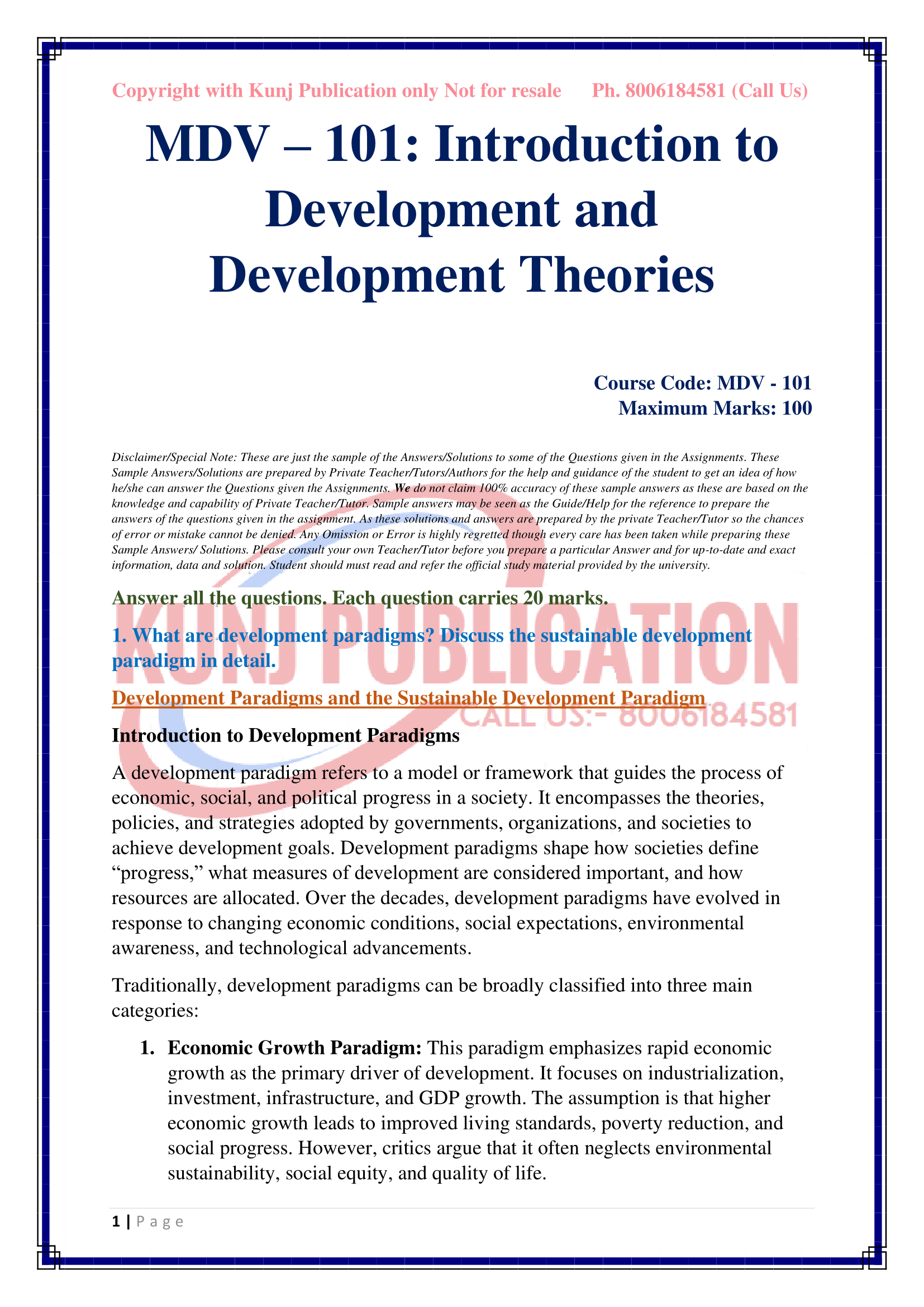 IGNOU MDV-101 SOLVED ASSIGNMENT 2025-26 ENGLISH MEDIUM