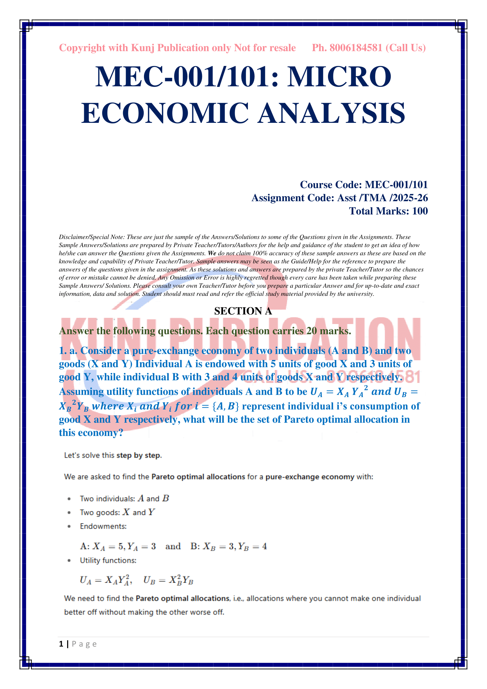 IGNOU MEC-001/101 SOLVED ASSIGNMENT 2025-26 ENGLISH MEDIUM