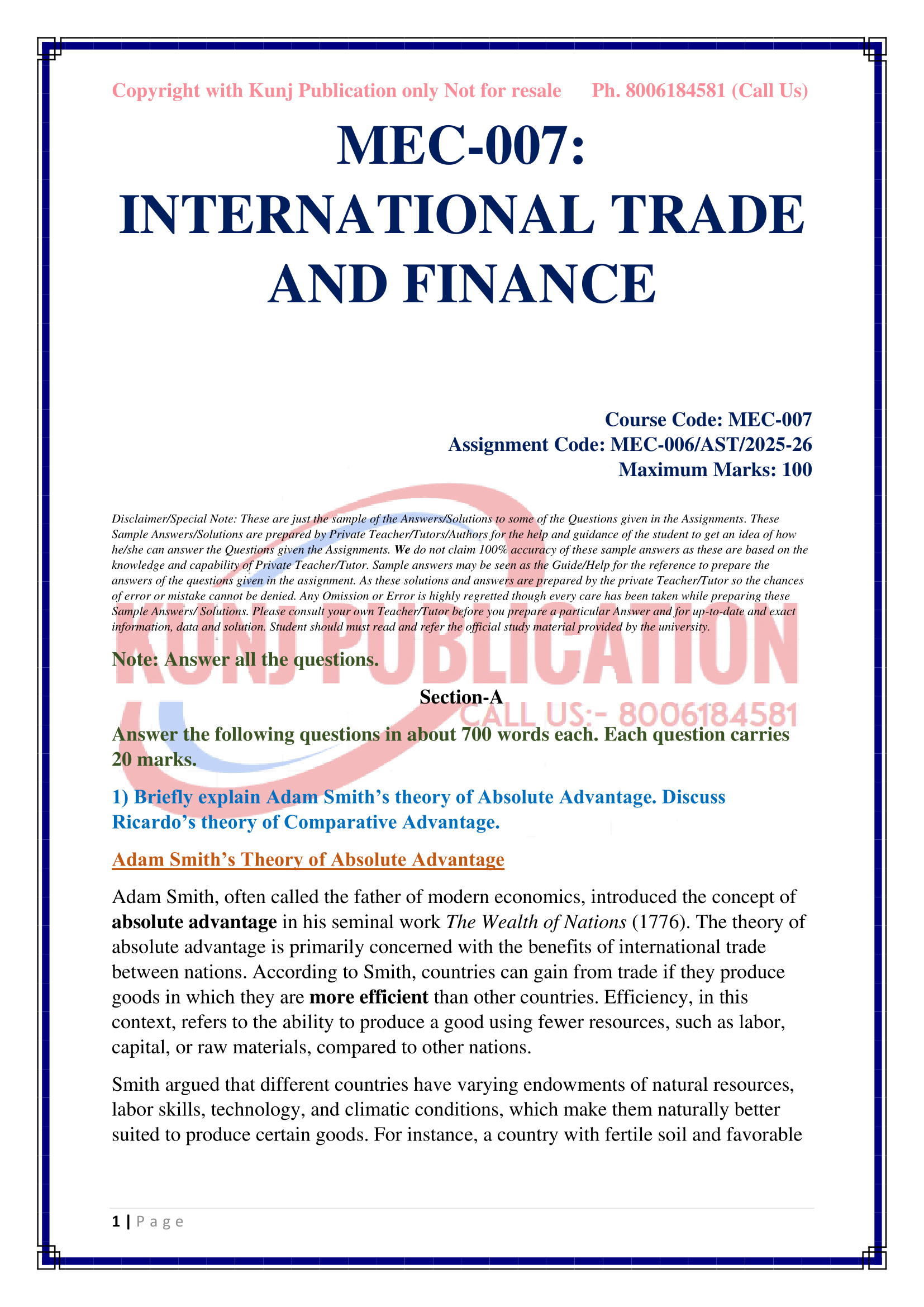 IGNOU MEC-007 SOLVED ASSIGNMENT 2025-26 ENGLISH MEDIUM