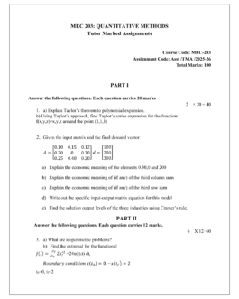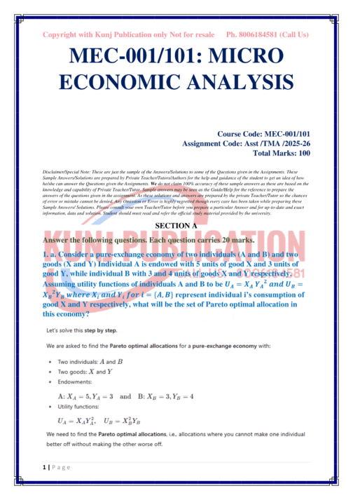 IGNOU MEC-101 SOLVED ASSIGNMENT 2025-26 ENGLISH MEDIUM