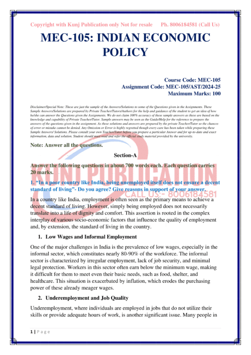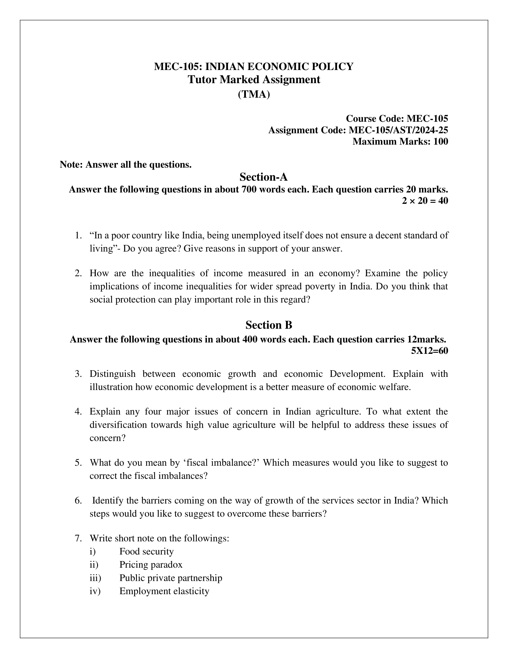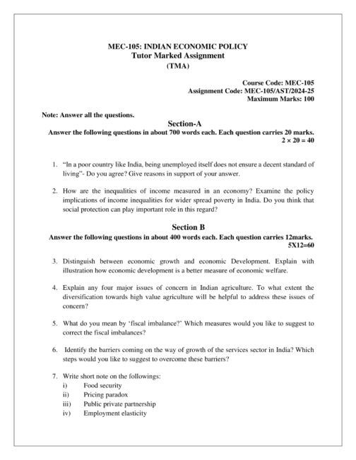 IGNOU MEC-105 SOLVED ASSIGNMENT 2024-25 ENGLISH MEDIUM