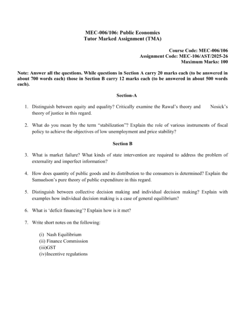 IGNOU MEC-106 SOLVED ASSIGNMENT 2025-26 ENGLISH MEDIUM