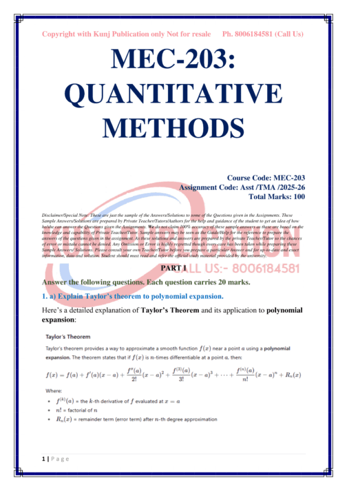 IGNOU MEC-203 SOLVED ASSIGNMENT 2025-26 ENGLISH MEDIUM