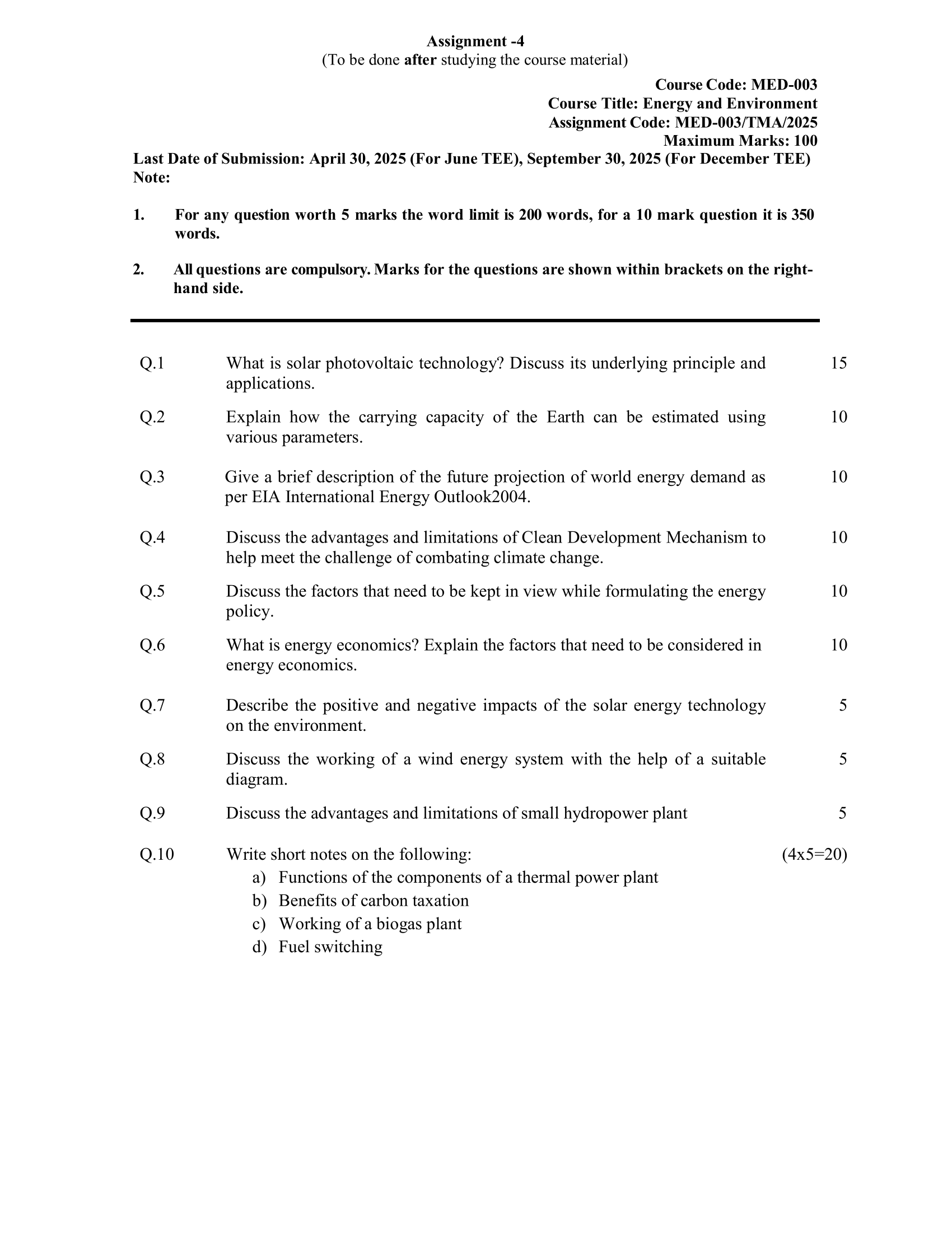 | Course | MSCRWEE Programme M.Sc (Renewable Energy and Environment) |
