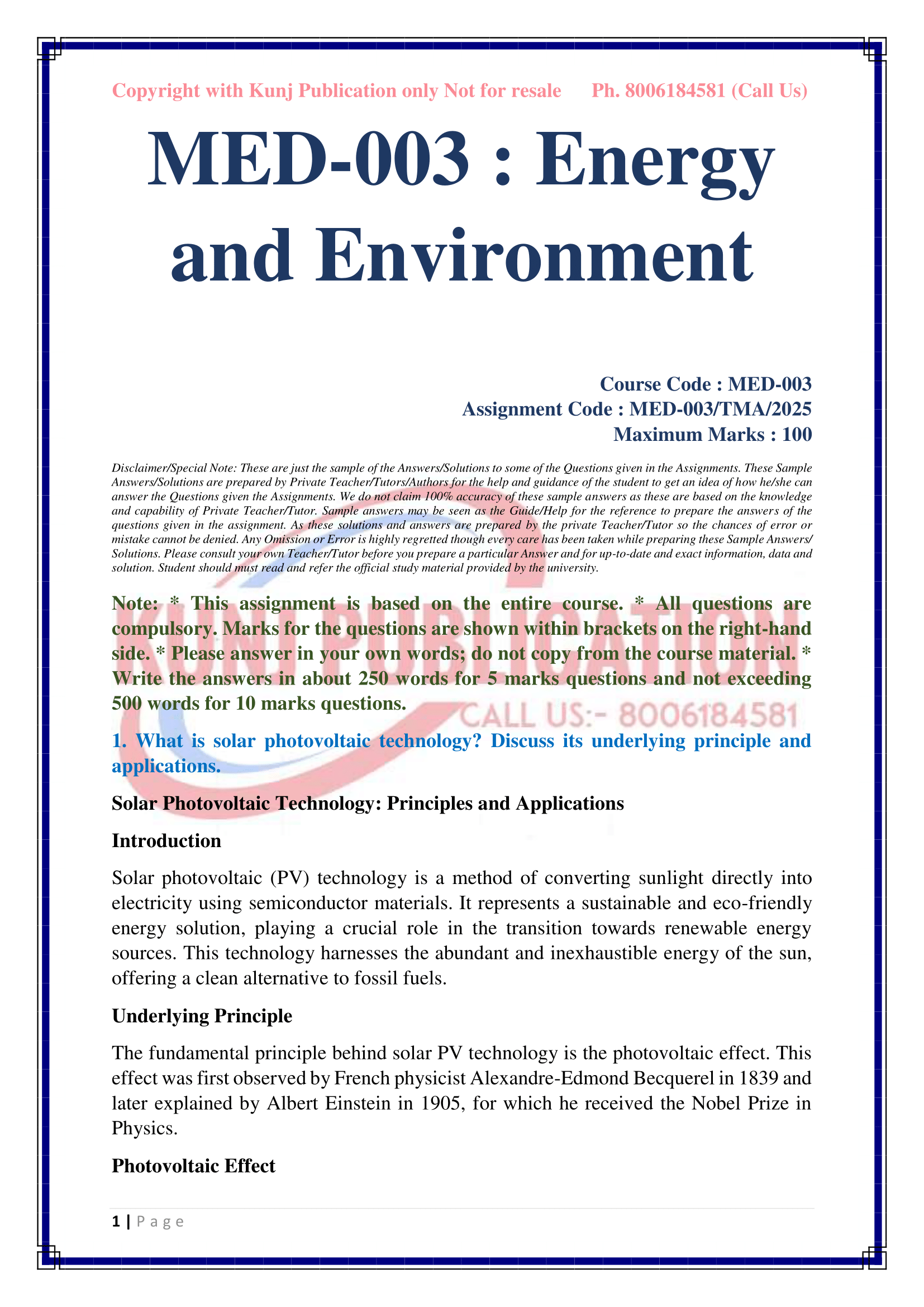 IGNOU MED-003 SOLVED ASSIGNMENT 2025 ENGLISH MEDIUM