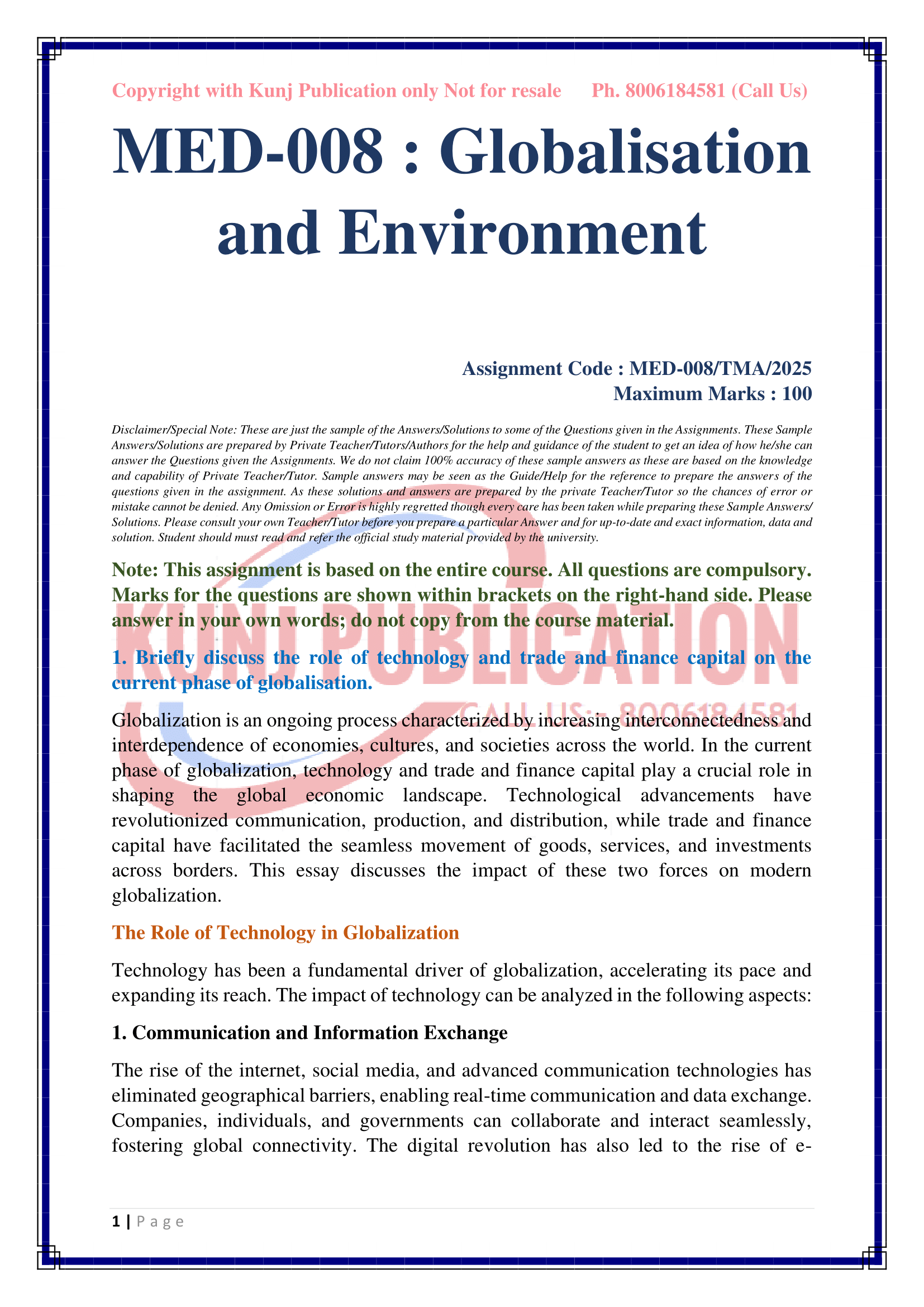 Service Type After successful payment, you will be redirected to the download page, now click on the download button and you will be able to download assignment solutions PDF file. You will also receive the download link on your mail. In addition, if you have any query or need any support please contact us on Kunjpublication20@gmail.com.