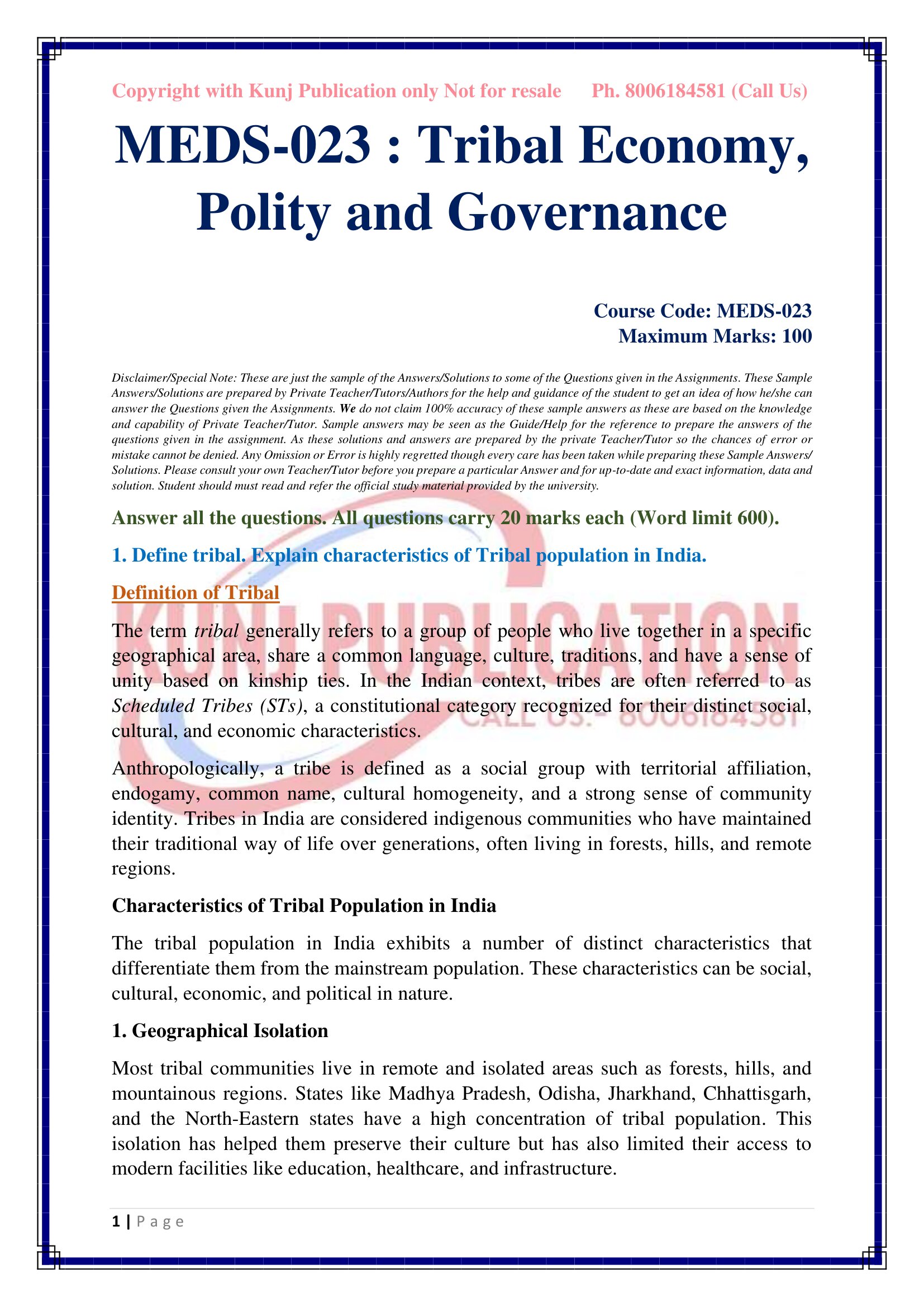 IGNOU MEDS-023 SOLVED ASSIGNMENT 2026 ENGLISH MEDIUM