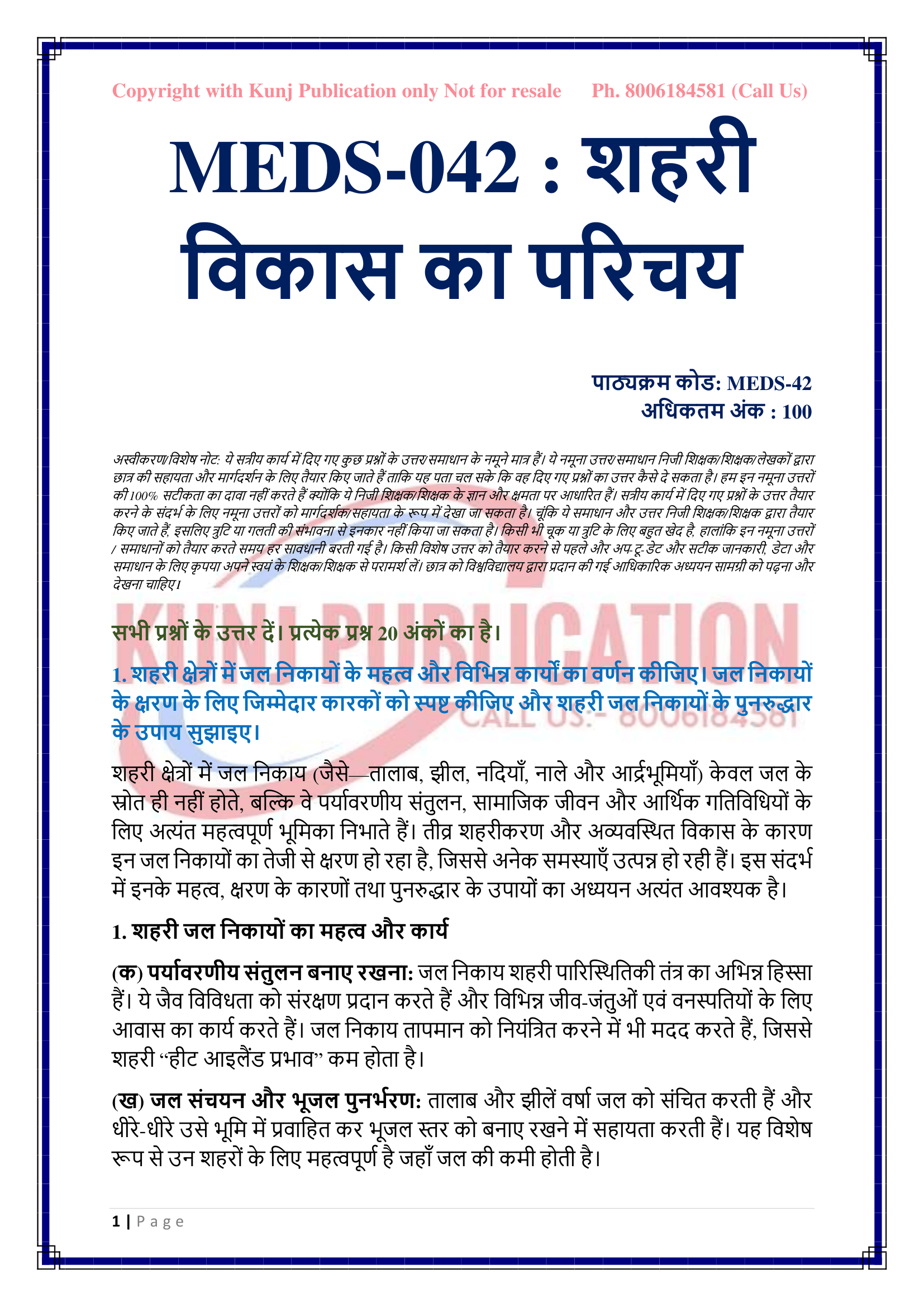 IGNOU MEDS-42 SOLVED ASSIGNMENT 2025-26 HINDI MEDIUM
