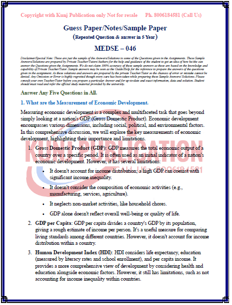 SERVICE TYPE | IGNOU Solved Guess paper/Notes/Sample Paper (Soft Copy/PDF) |