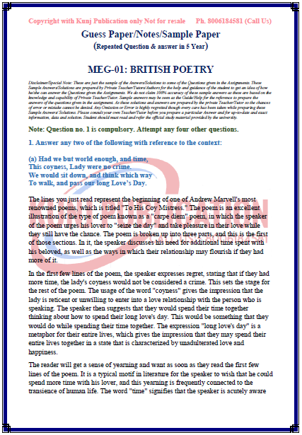 IGNOU MEG-01 SOLVED GUESS PAPER/NOTES/SAMPLE PAPER ENGLISH MEDIUM