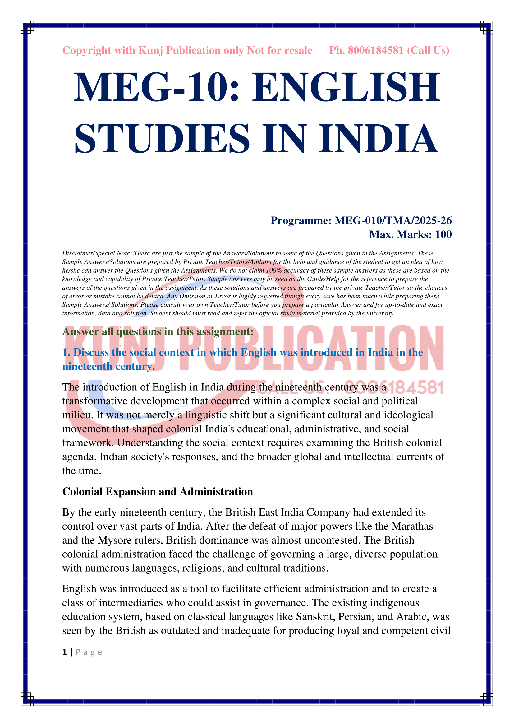 IGNOU MEG-10 SOLVED ASSIGNMENT 2025-26 ENGLISH MEDIUM