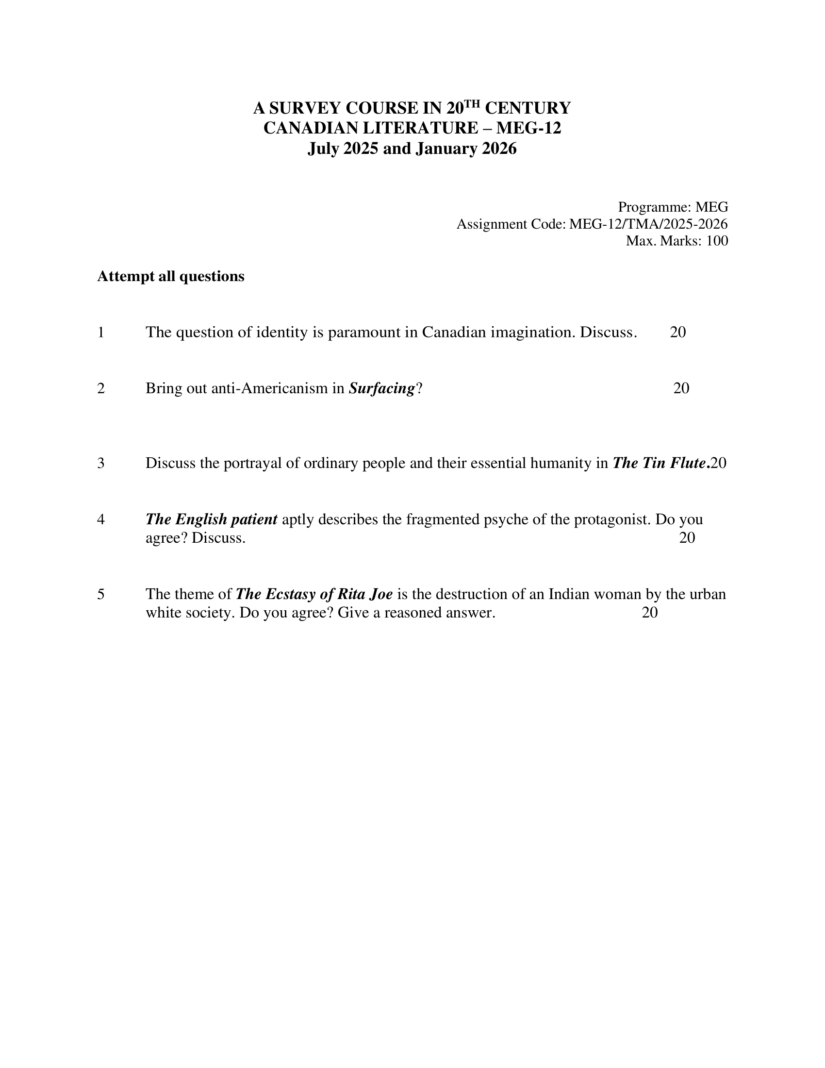 IGNOU MEG-12 SOLVED ASSIGNMENT 2025-26 ENGLISH MEDIUM