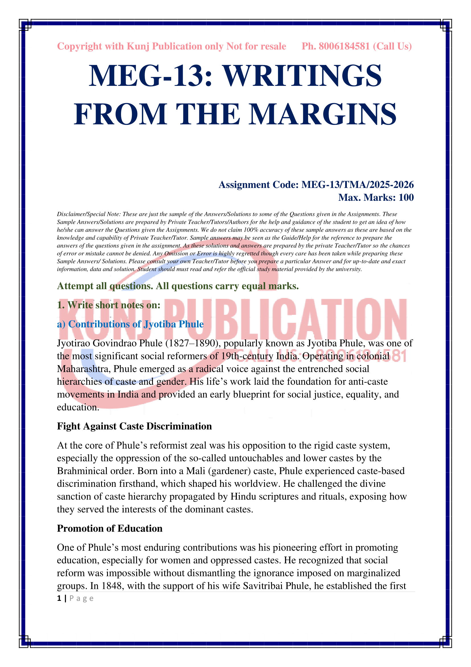 IGNOU MEG-13 SOLVED ASSIGNMENT 2025-26 ENGLISH MEDIUM