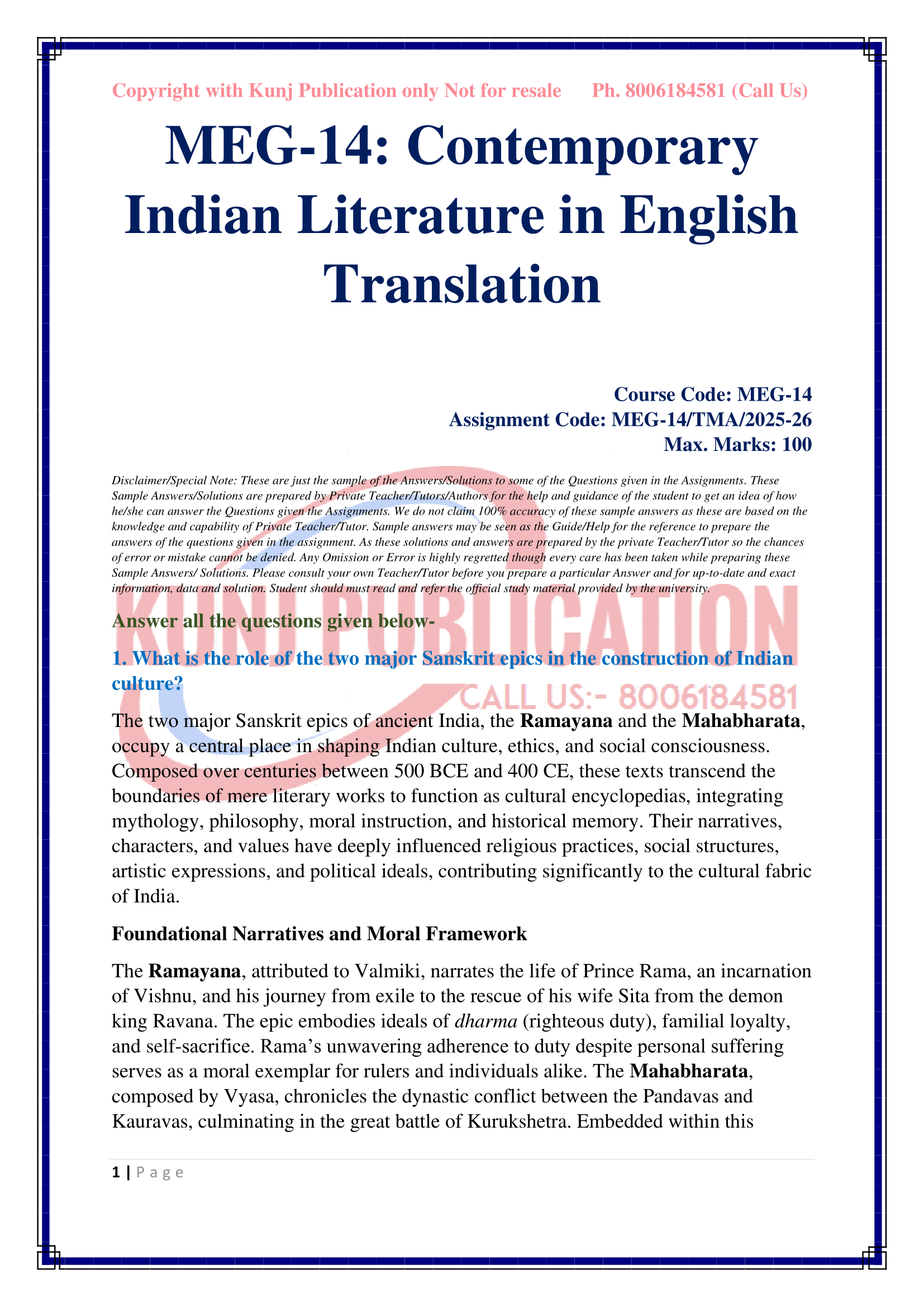 IGNOU MEG-14 SOLVED ASSIGNMENT 2025-26 ENGLISH MEDIUM
