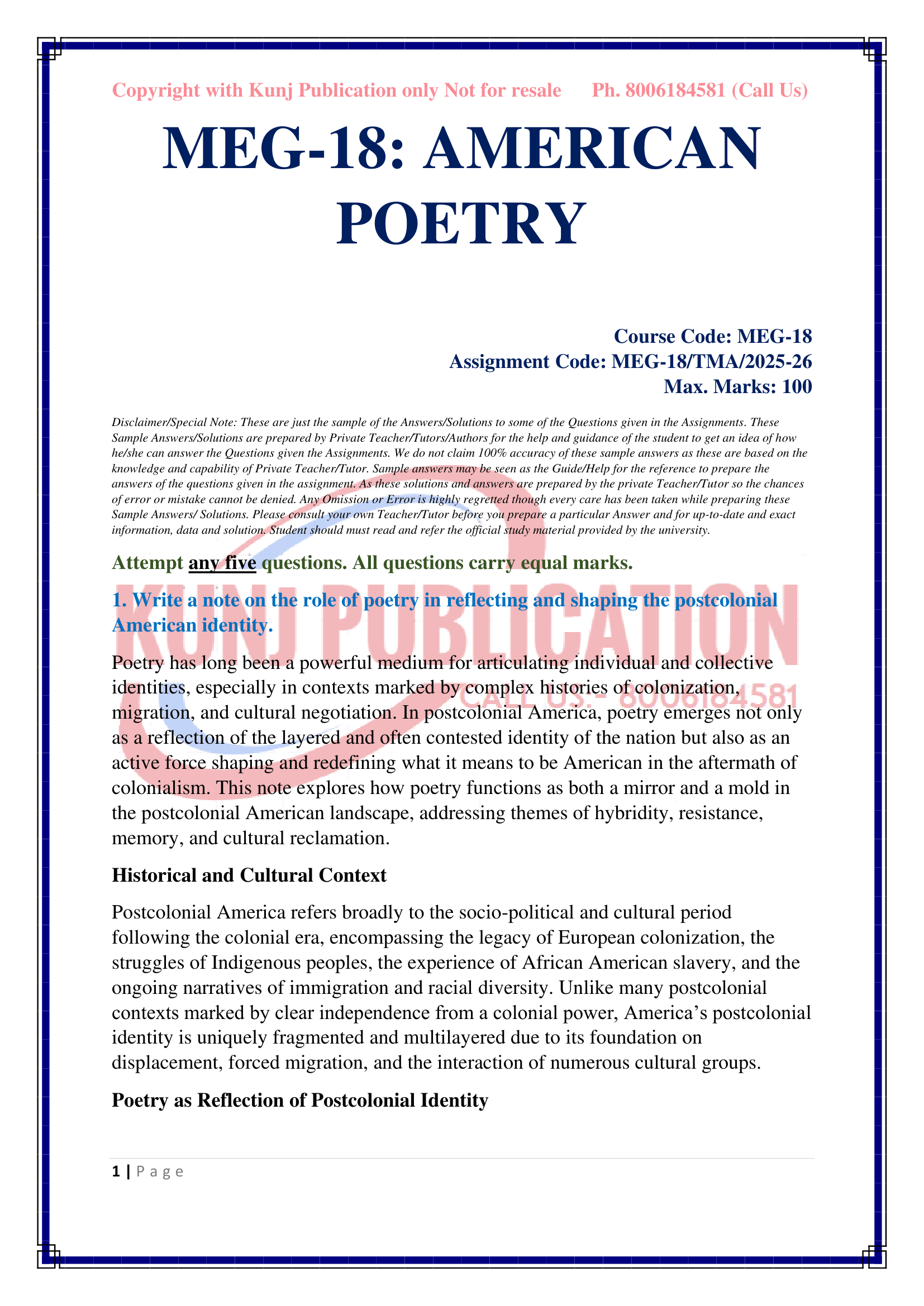 IGNOU MEG-18 SOLVED ASSIGNMENT 2025-26 ENGLISH MEDIUM