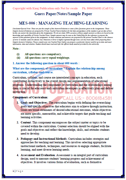 IGNOU MES-006 SOLVED GUESS PAPER/NOTES/SAMPLE PAPER ENGLISH MEDIUM