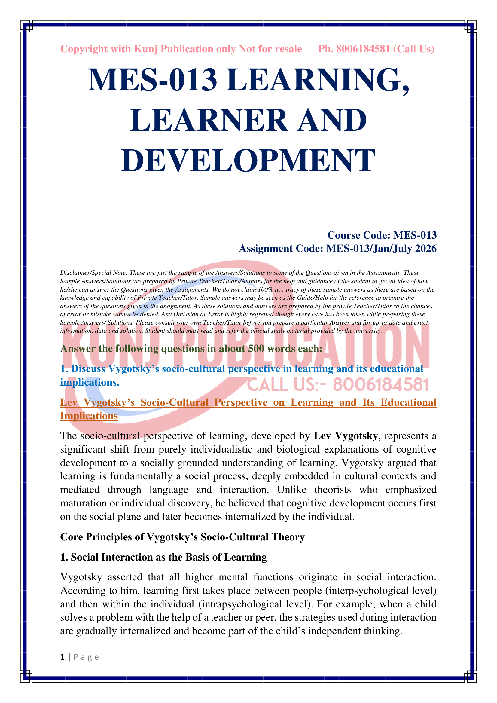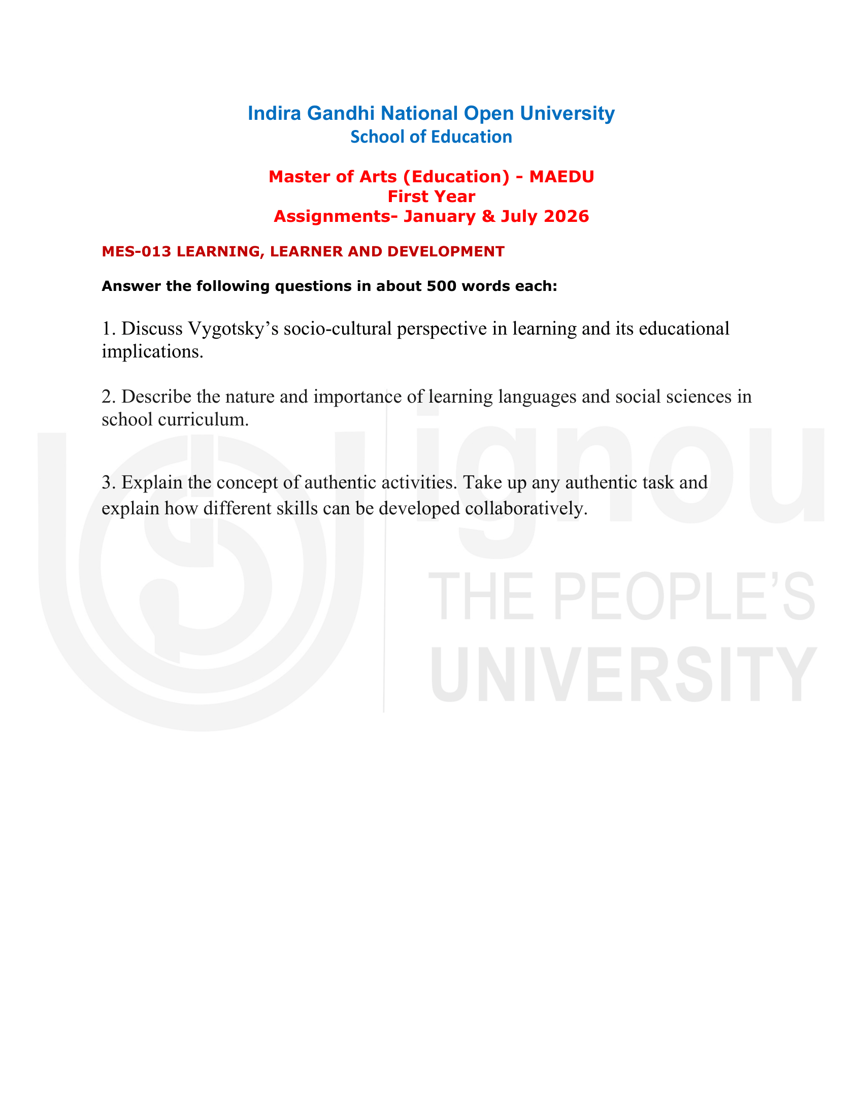 IGNOU MES-013 SOLVED ASSIGNMENT JAN-JULY 2026 ENGLISH MEDIUM