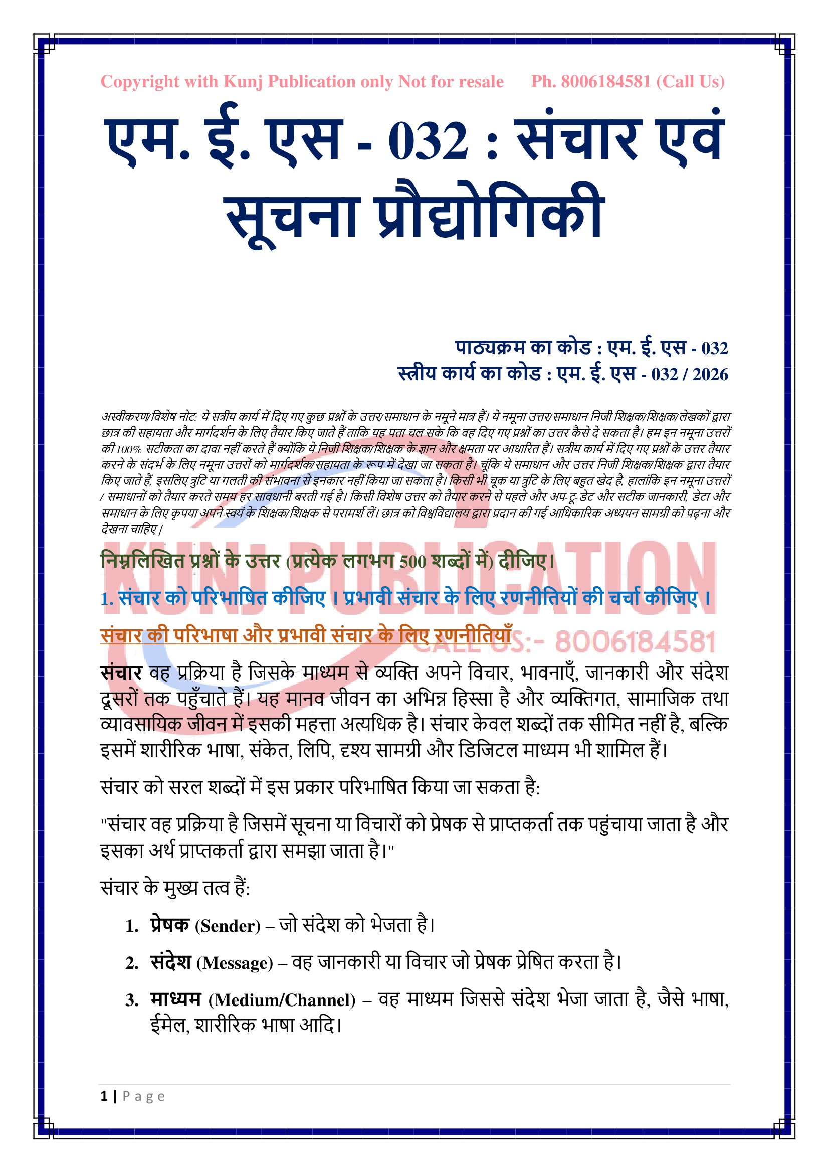 IGNOU MES-032 SOLVED ASSIGNMENT JAN-JULY 2026 HINDI MEDIUM