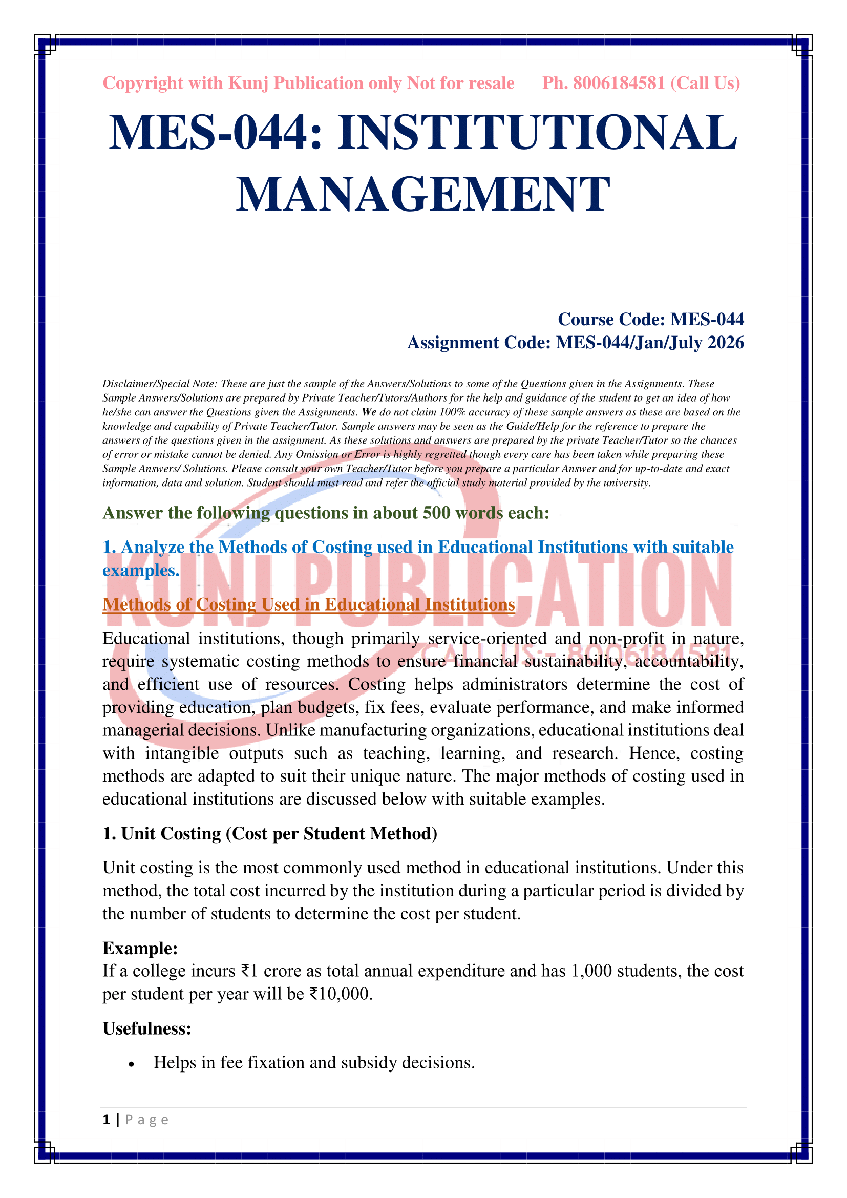 IGNOU MES-044 SOLVED ASSIGNMENT JAN-JULY 2026 ENGLISH MEDIUM