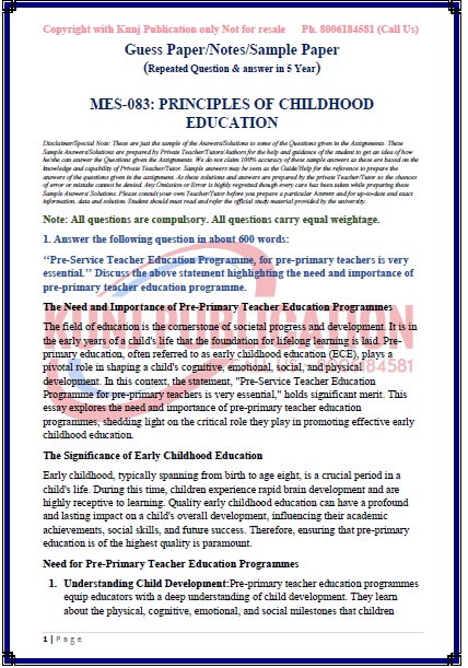 TITLE NAME MES-083 Solved Guess Paper ENGLISH MEDIUM