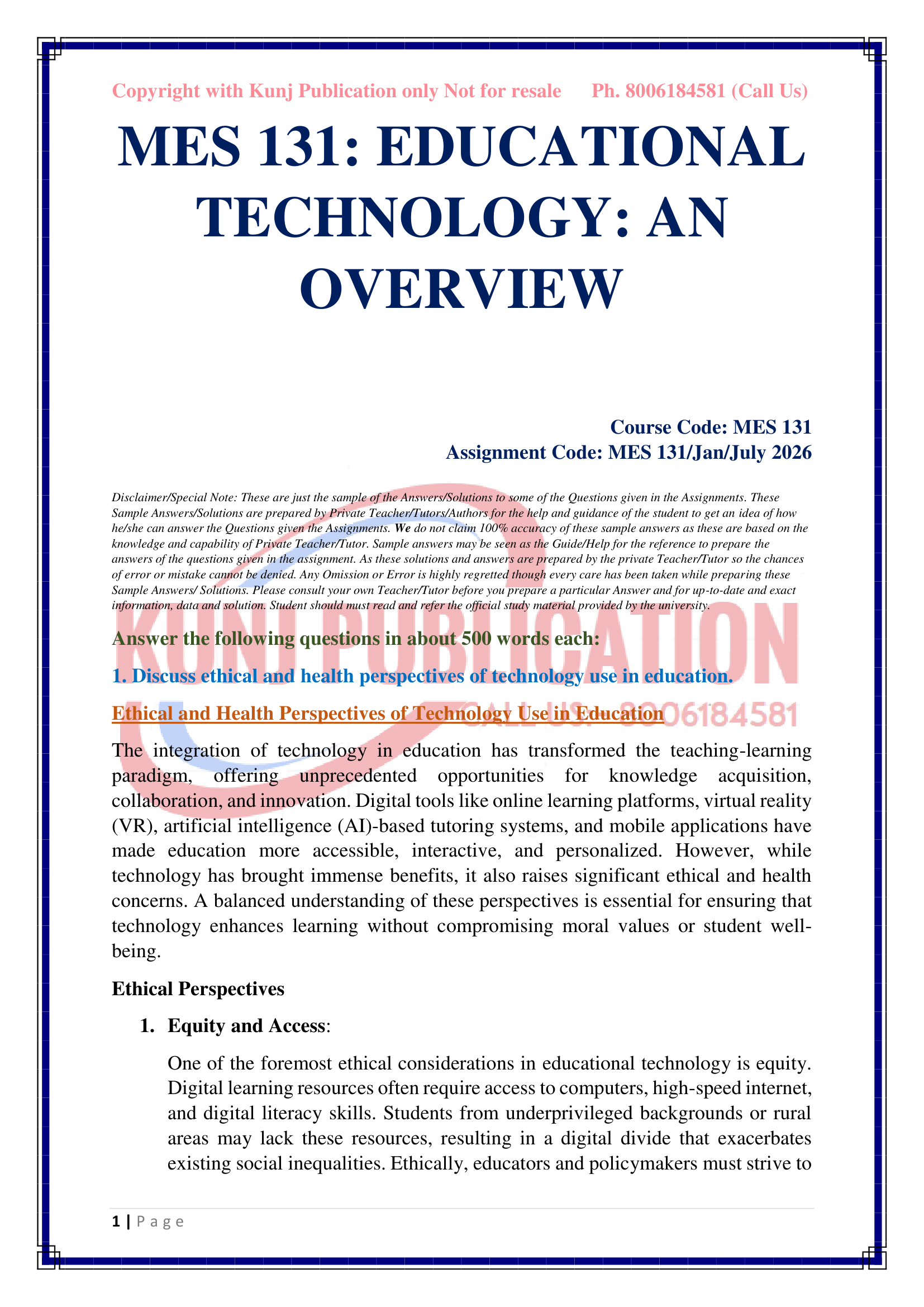 IGNOU MES-131 SOLVED ASSIGNMENT JAN-JULY 2026 ENGLISH MEDIUM