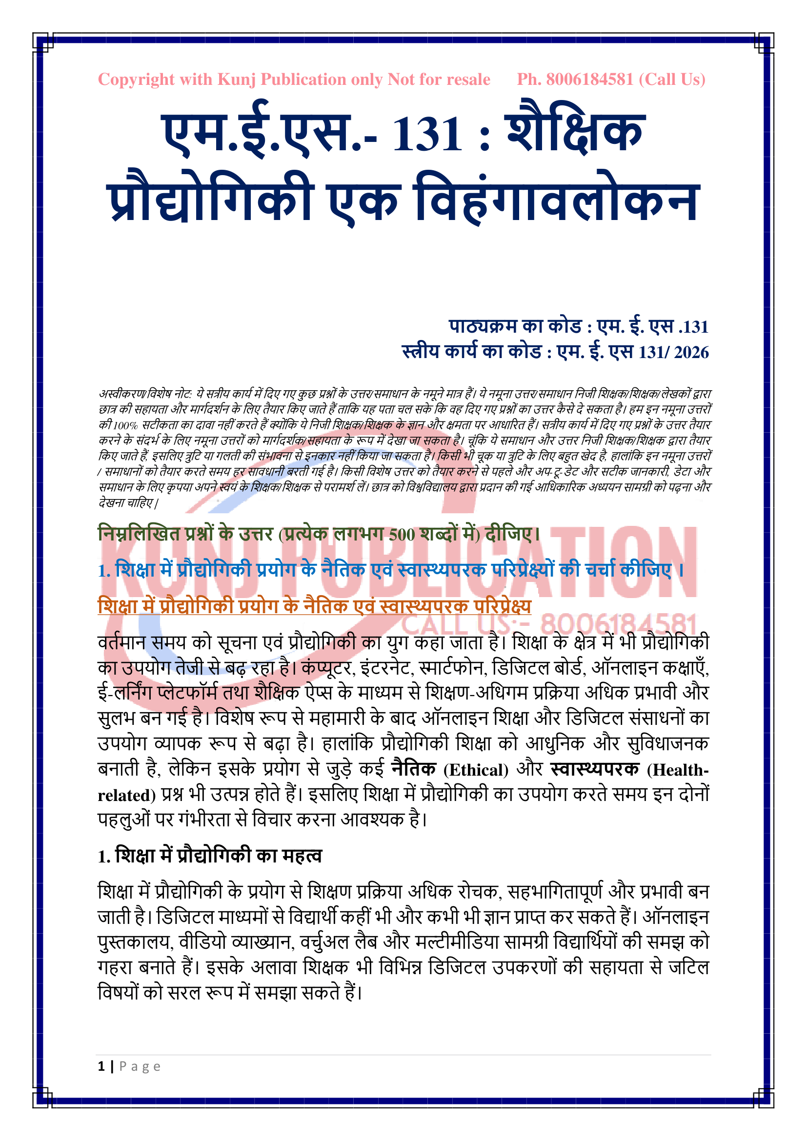IGNOU MES-131 SOLVED ASSIGNMENT JAN-JULY 2026 HINDI MEDIUM
