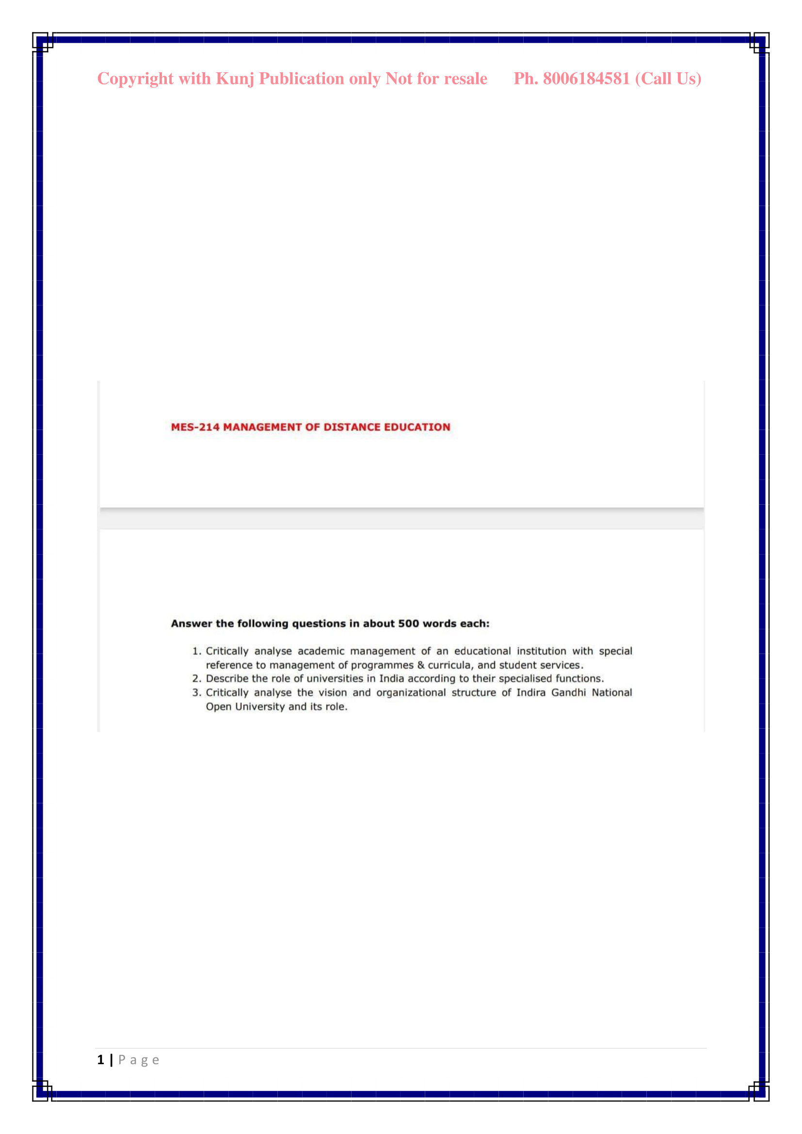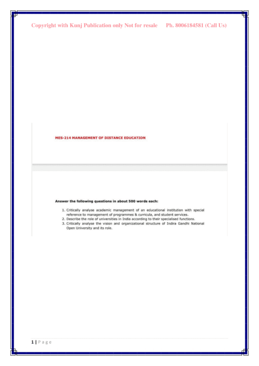 IGNOU MES-214 SOLVED ASSIGNMENT JULY 2024 ENGLISH MEDIUM