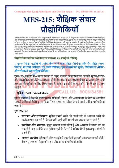 IGNOU MES-215 SOLVED ASSIGNMENT JULY 2024 HINDI MEDIUM