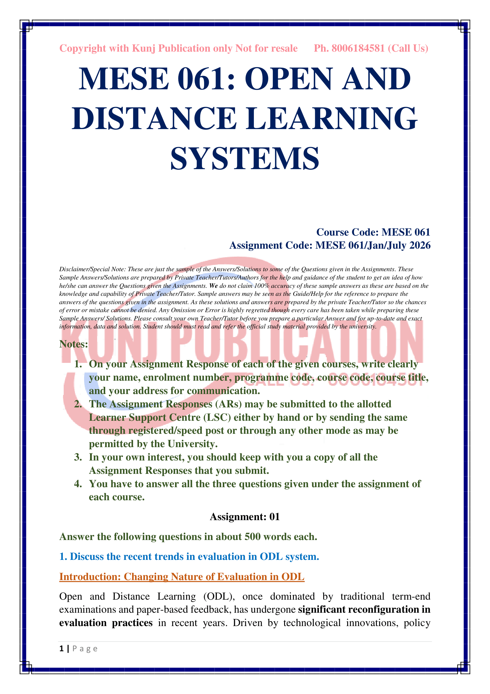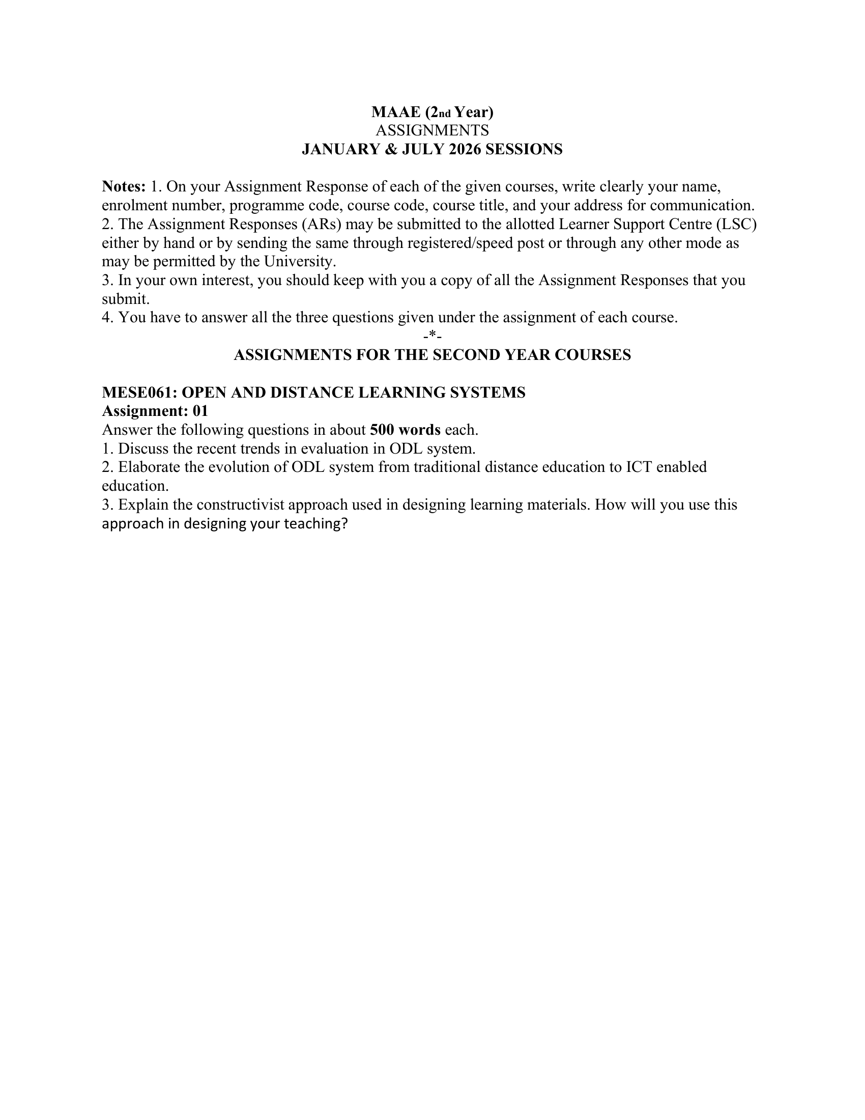 IGNOU MESE-061 SOLVED ASSIGNMENT JAN-JULY 2026 ENGLISH MEDIUM
