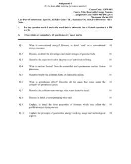 | Course | MSCRWEE Programme M.Sc (Renewable Energy and Environment) |